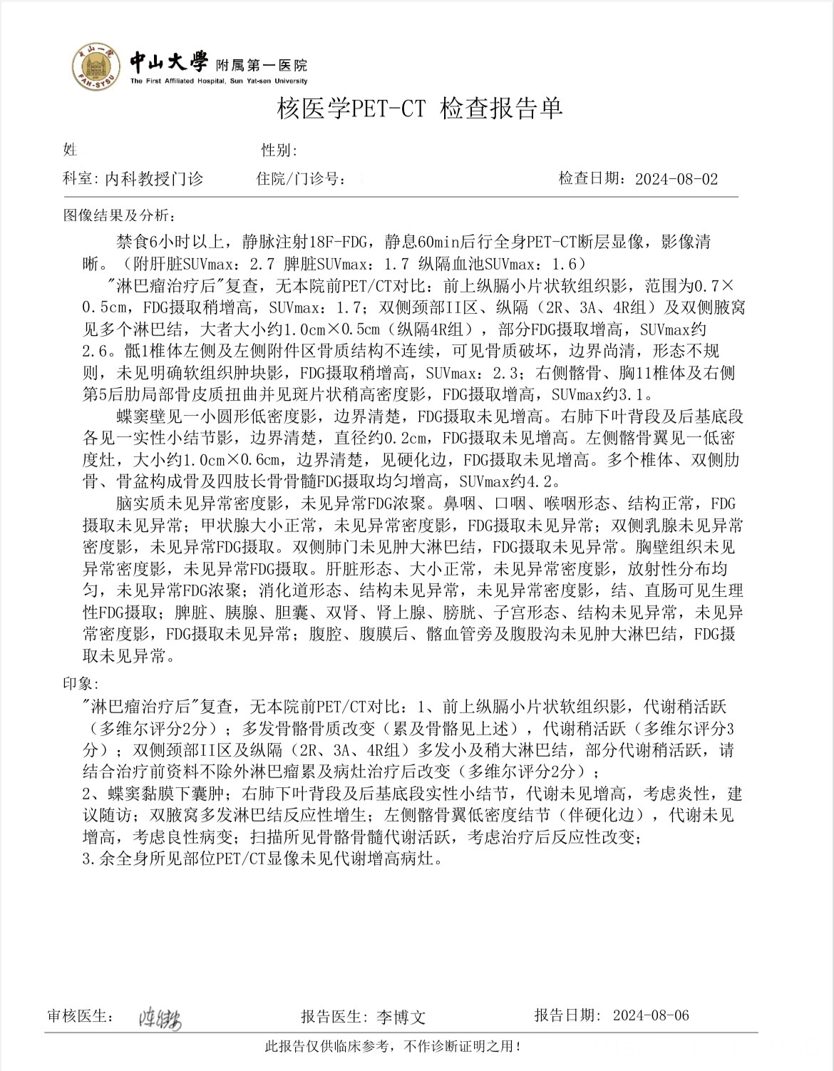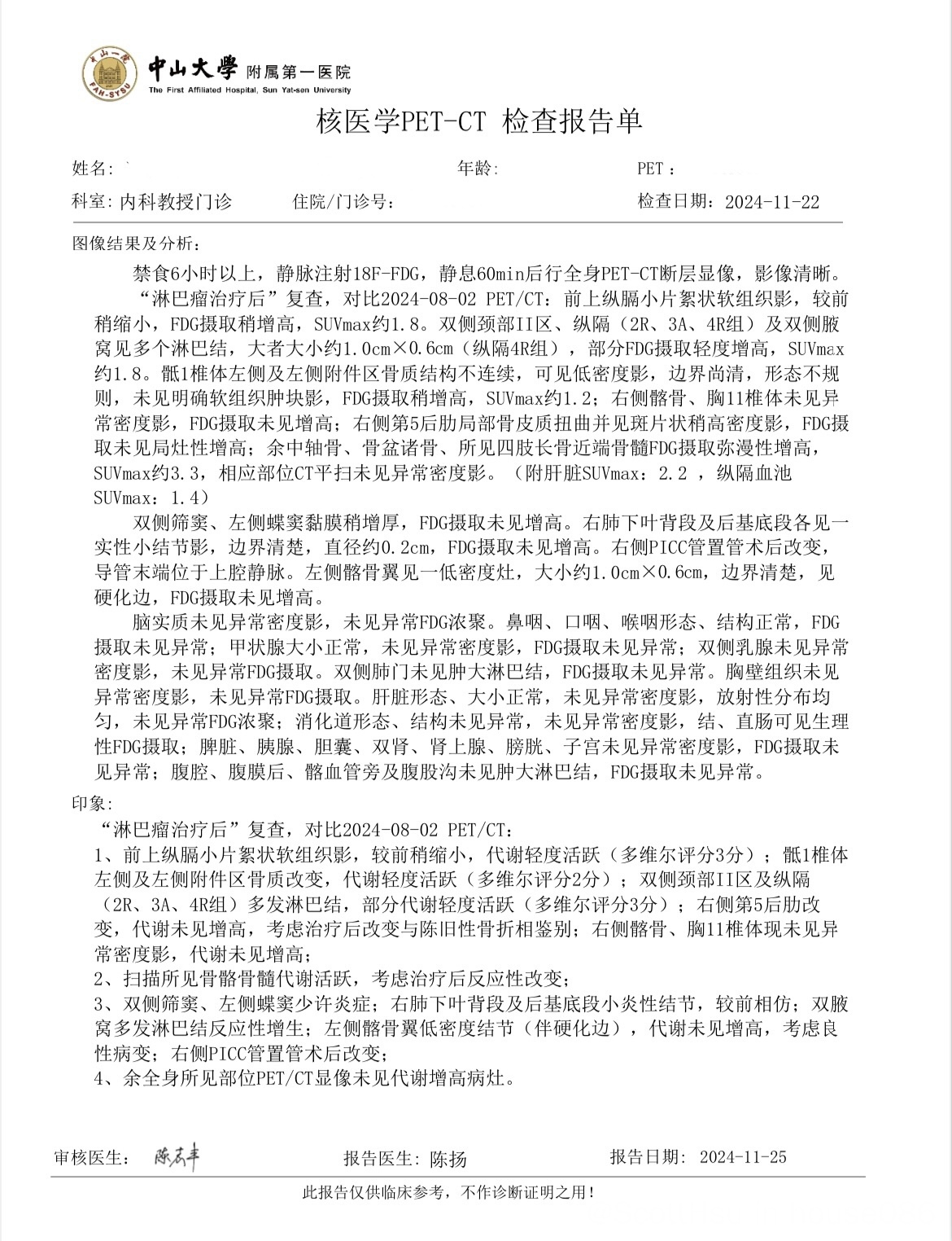 明白了,谢谢你啊!这报告看起来后面再加多4次化疗好像效果也不怎么好,跟上一次的结果好像差不了多少