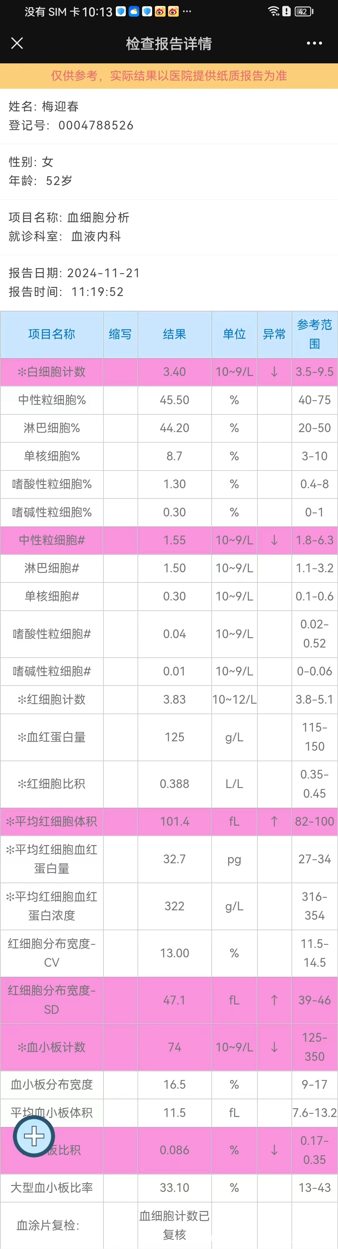 2022年10月诊断为血细胞综合征,采用芦可替尼+DEP方案化疗,于2023年1月结束7次化疗。