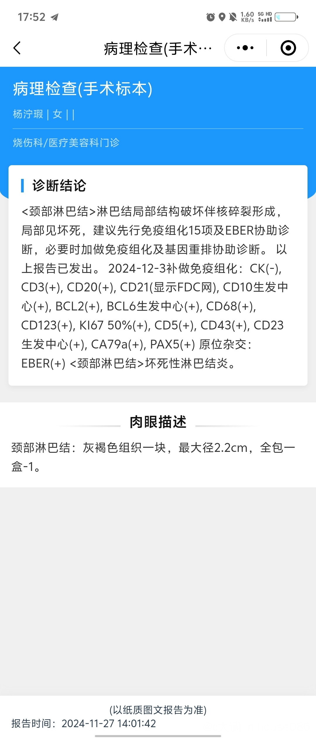 请各位大神看看我这个免疫组化,坏死性淋巴结炎对吗