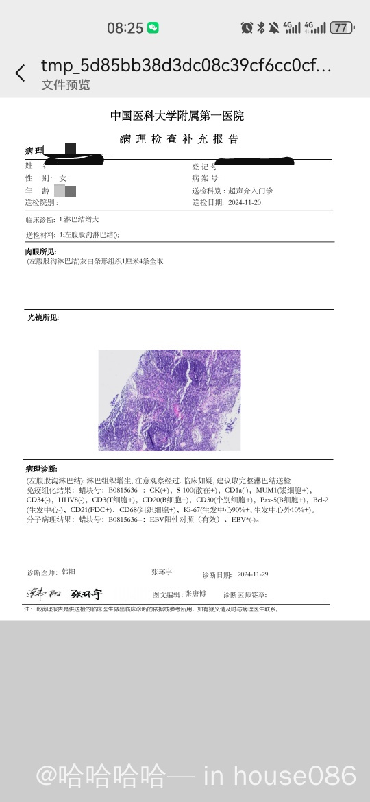 主要是五年前得过淋巴瘤 怕这次复发了 心慌慌