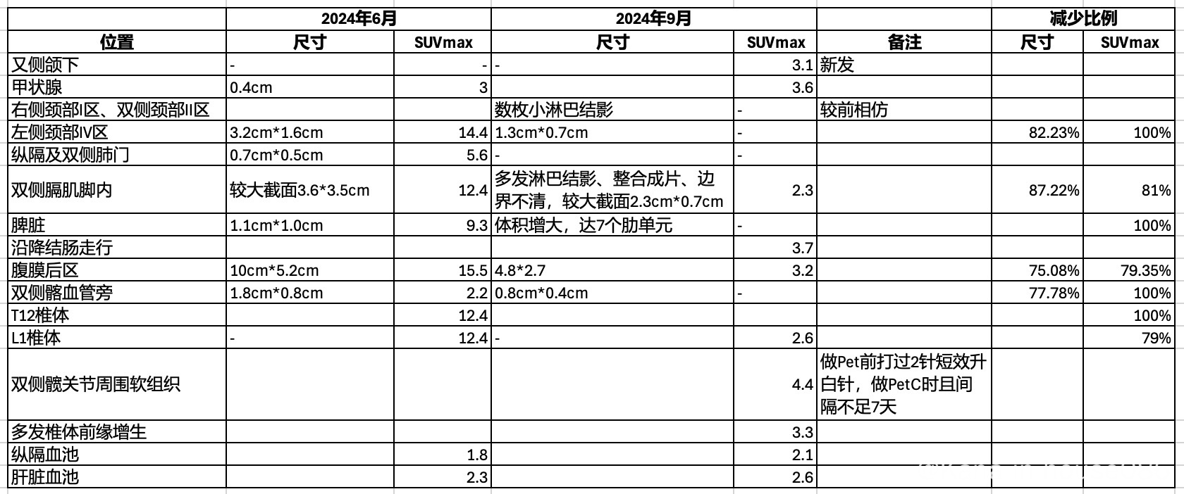 4疗后PetCT及与治疗前数值比较