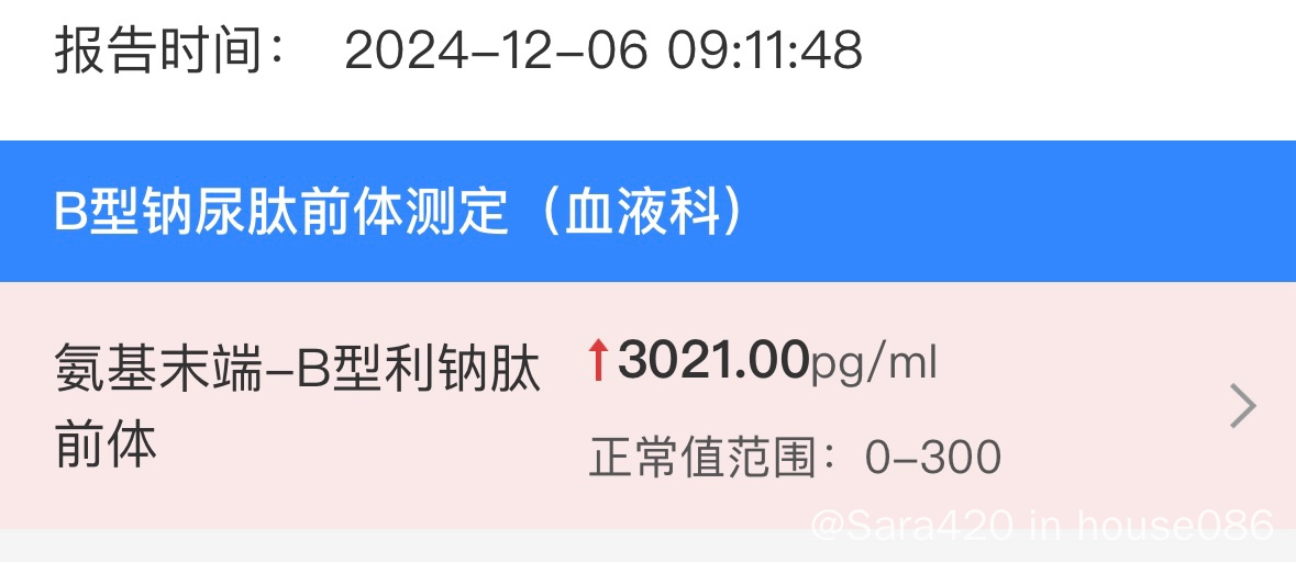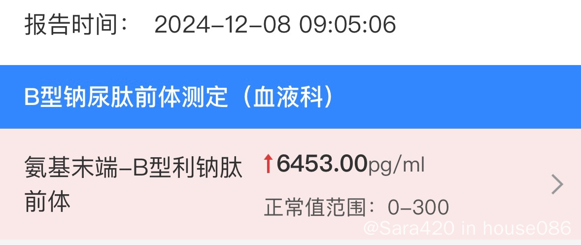 身体有没有浮肿?体重增加很多吗?如果是,赶紧加利尿的药。如果不是,和医生确认原因。这个指标不应该这么高的。