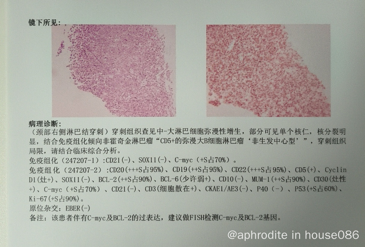 病理报告弥漫大b细胞(非生发中心起源)