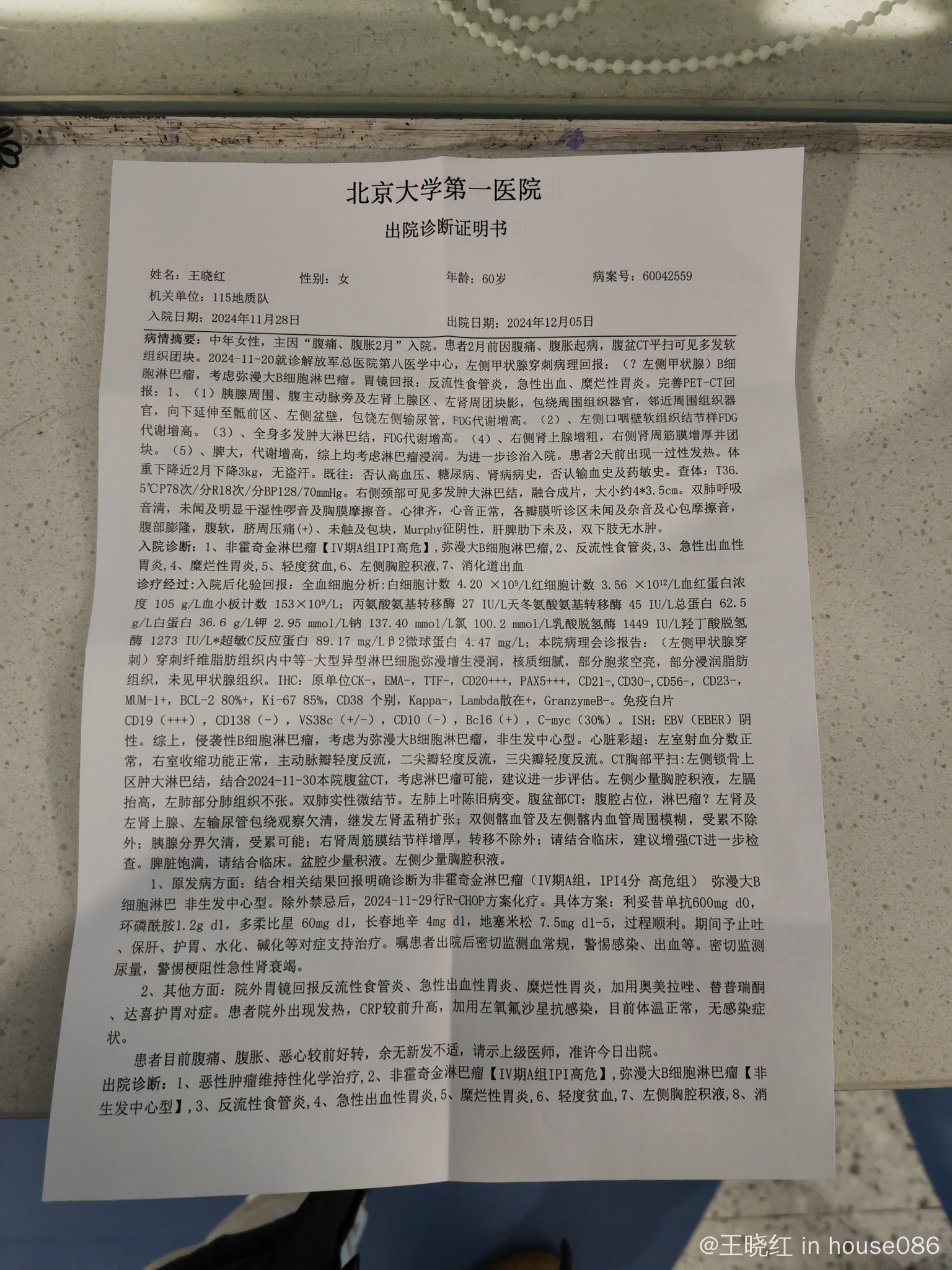 下次改成pola r chp治疗。明年一月可以走医保。需要使用大剂量甲胺蝶玲中枢预防。二疗前和医生确认,二疗前做大剂量甲胺蝶玲,然后再化疗。