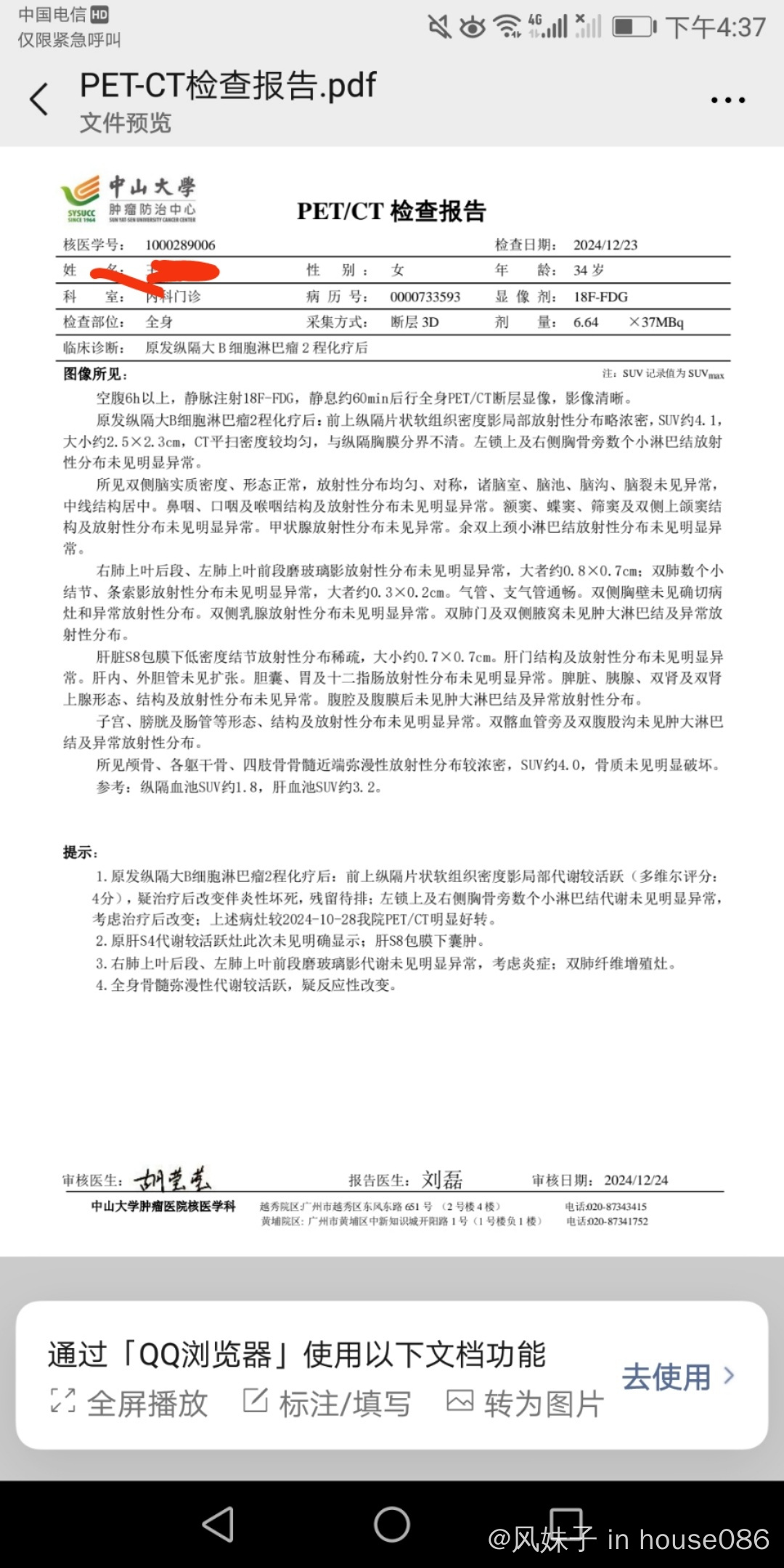 风妹子 发表于 2024-12-24 22:52 已上传化疗前PETCT