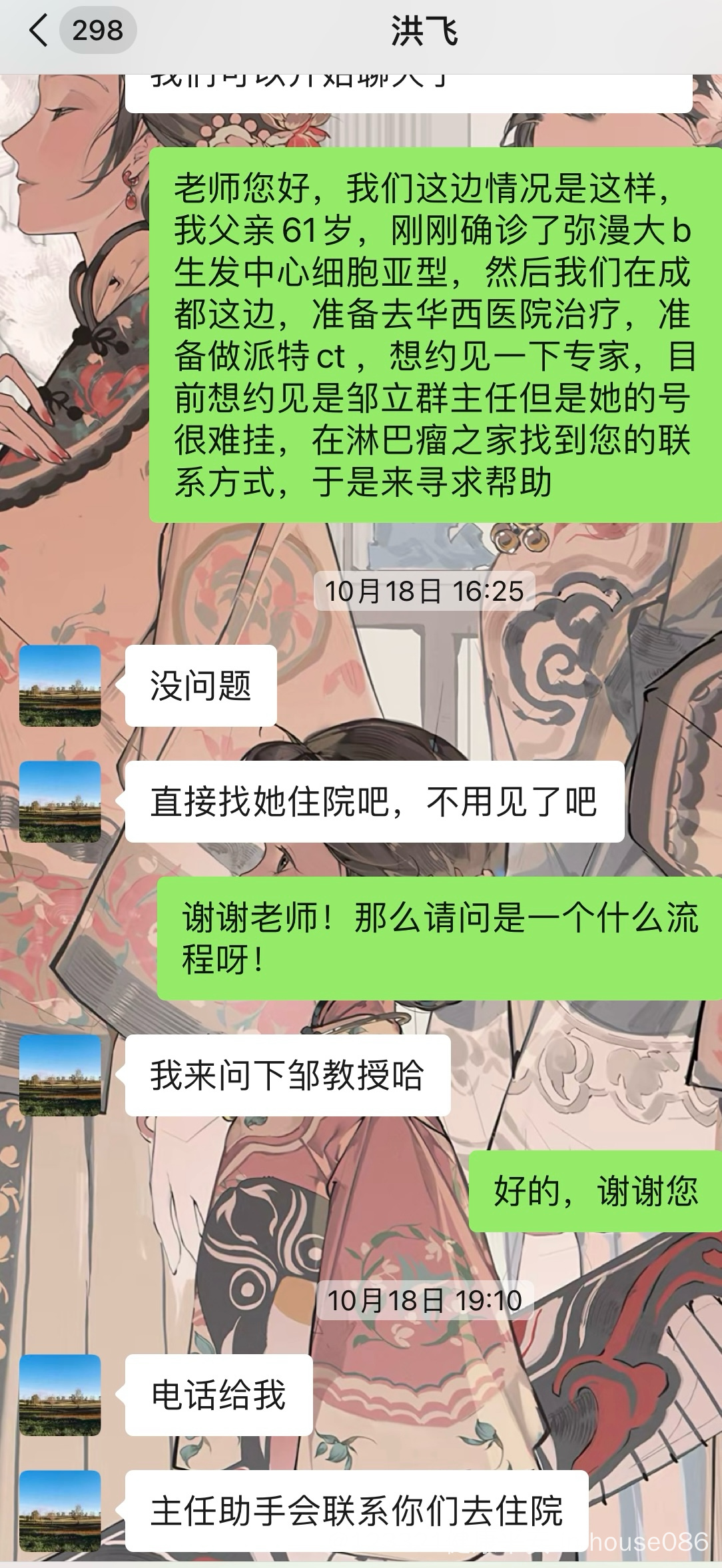2024年10月我父亲检查出弥漫大B,当时做了手术切除, 想去华西住院,但是专家号很难挂,我偶然刷到帖子有大专家直接约见福利,就联系上了洪飞老师,当时真的很迷茫,洪飞老师直接跟我说可以直接入院!真的帮了我们家一个大忙