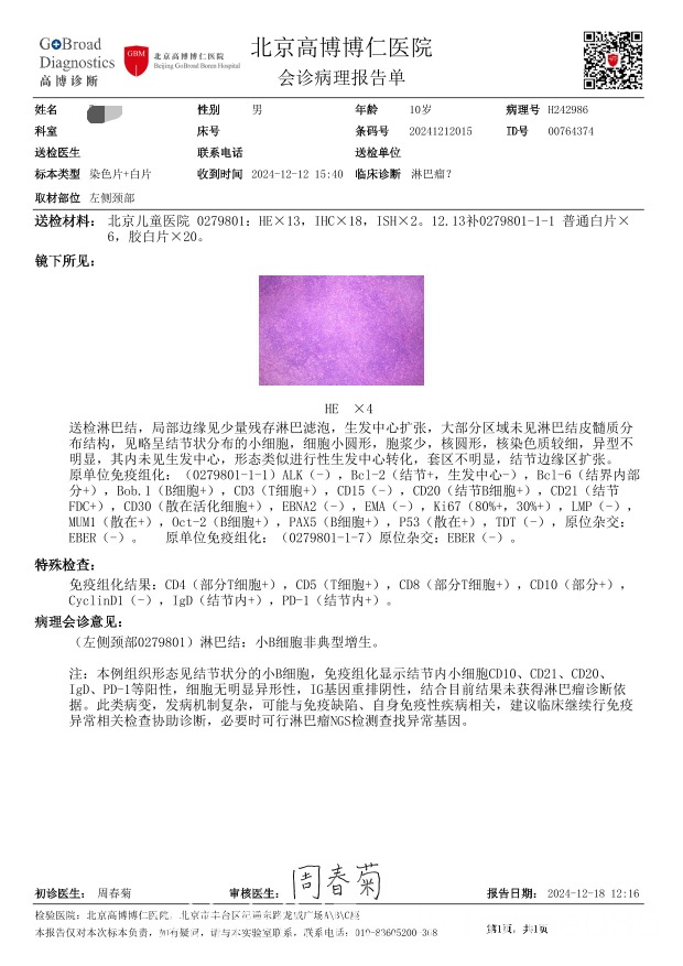 涛声依旧... 发表于 2024-12-31 13:30 谢大神,两三个淋巴肿大中,B超显示异常的仅这一个,已经手术活检,再检估计没有有效组织了,是不是只有 ...