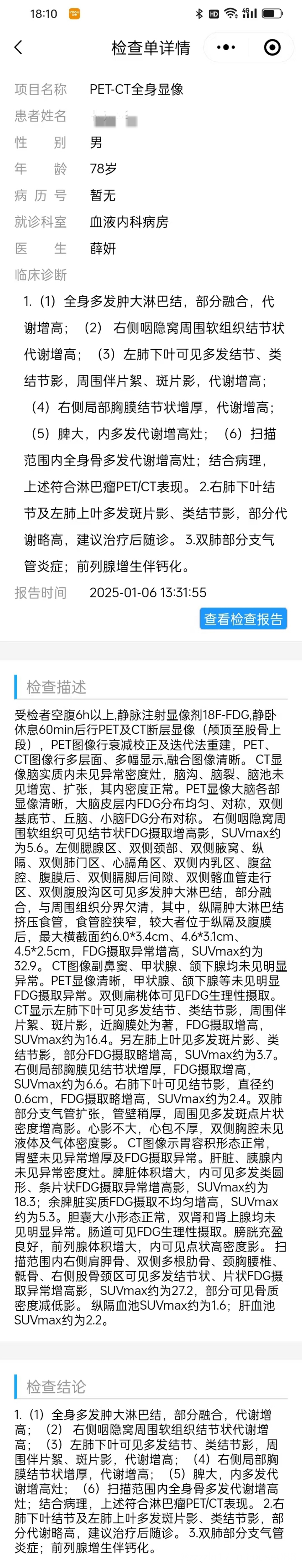 病理报告结果如何?淋巴瘤有一百多种分型,确定淋巴瘤种类后,尽快化疗。
