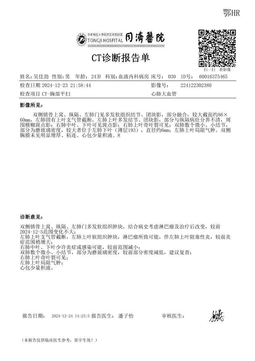 它也会有20%概率导致血小板 中粒细胞减少。武汉同济朱晓健给的什么治疗建议?你再找他去评估一下。
