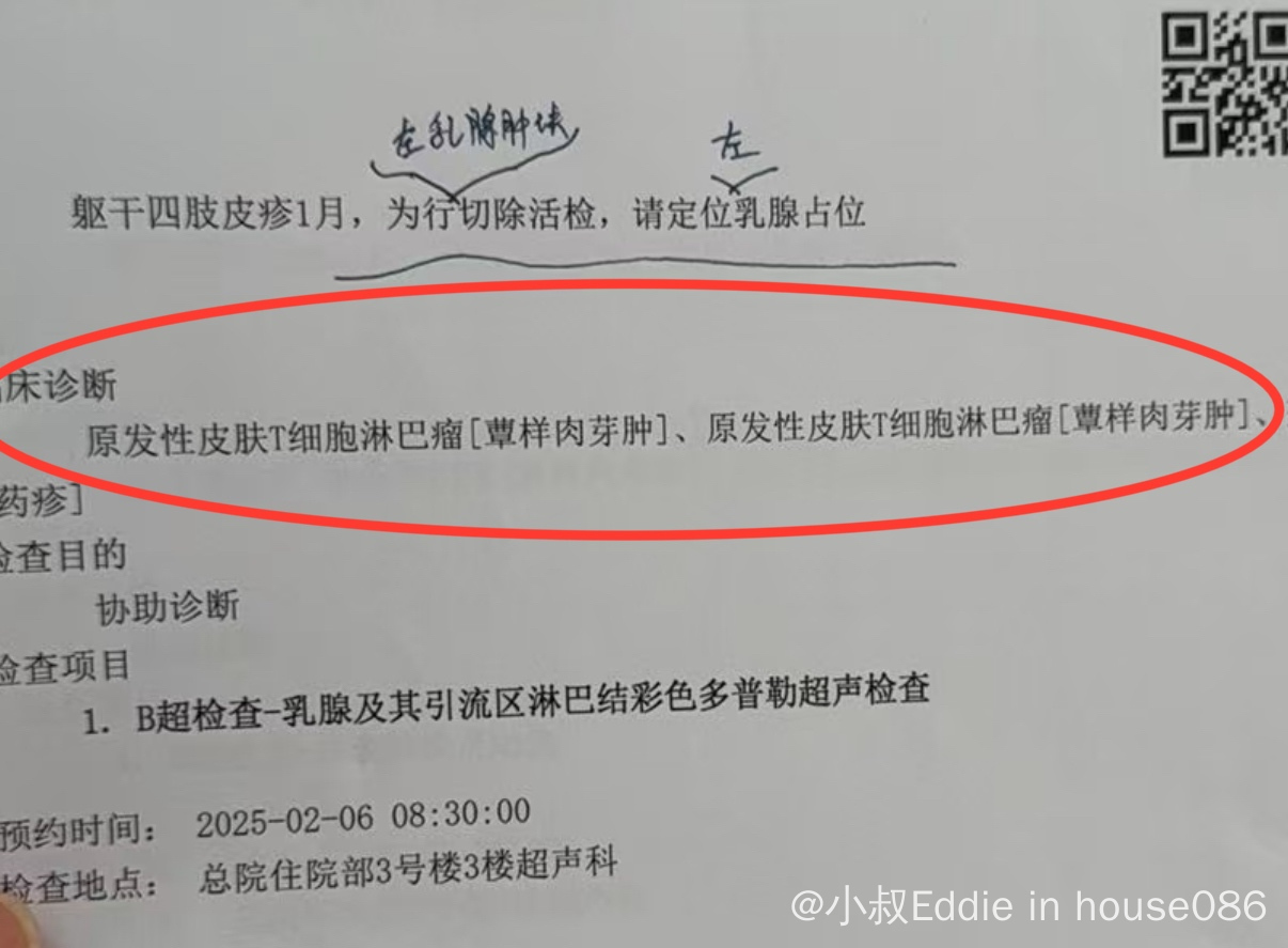 刚确诊,原发性皮肤t细胞淋巴瘤,目前在华山医院治疗。