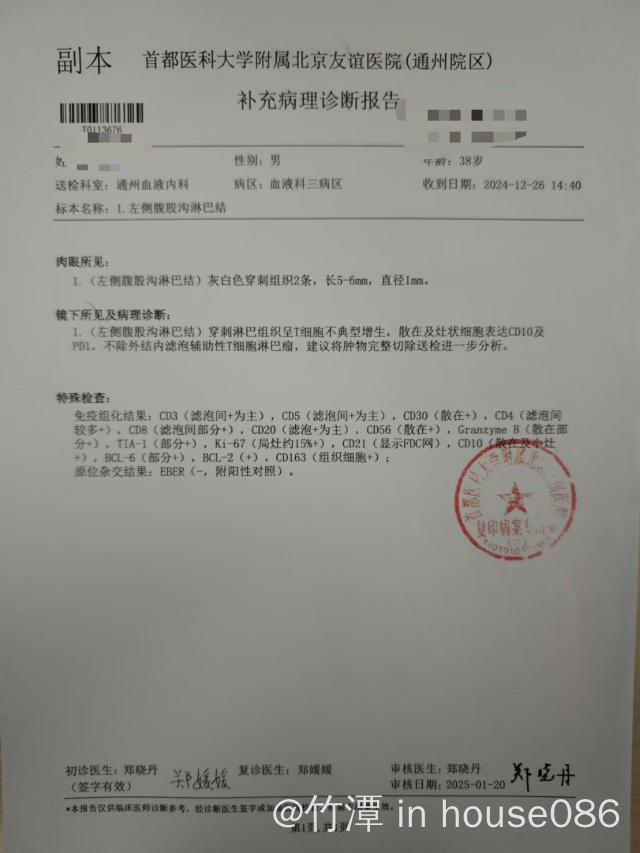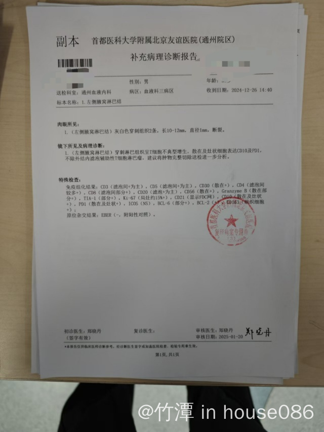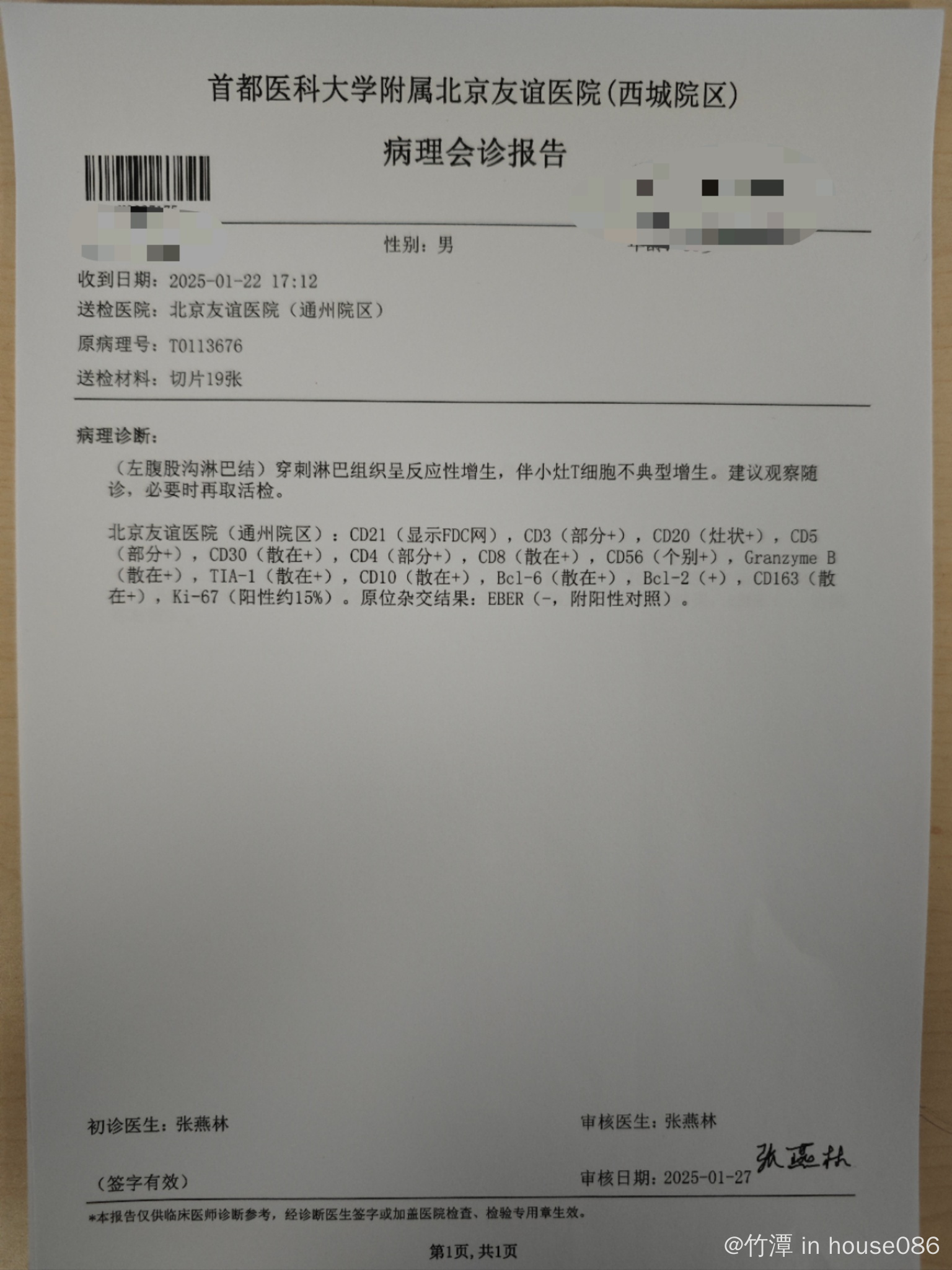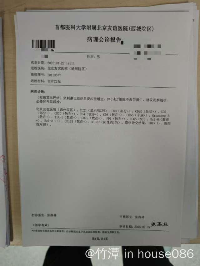 我找过王昭,当时在友谊医院做的检查,病理查出不除外淋巴瘤,但是后来两次病理会诊说不像是。