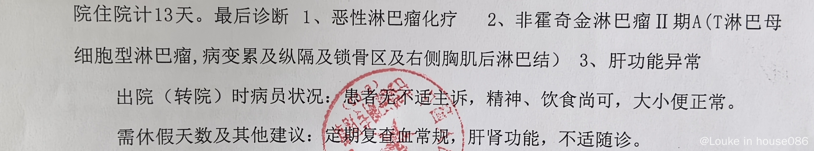 非霍奇金淋巴瘤II期A(T淋巴母 细胞型淋巴瘤,病变累及 ...