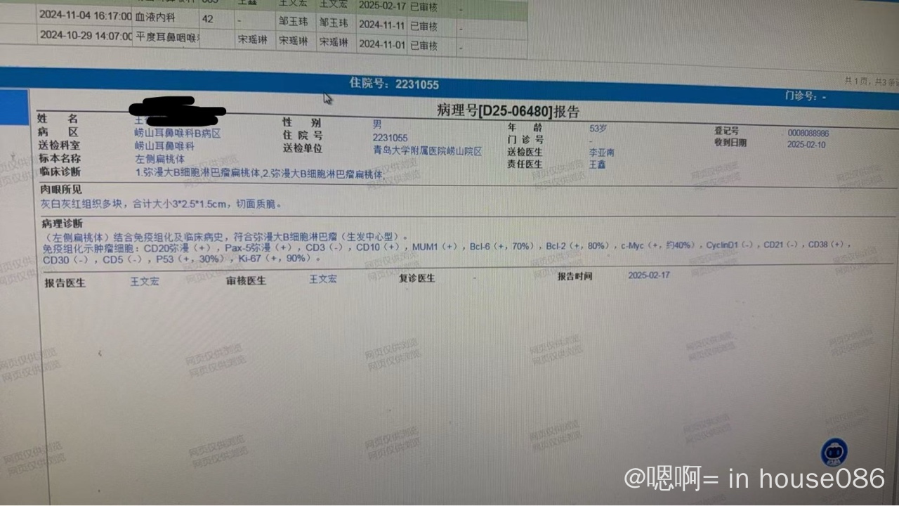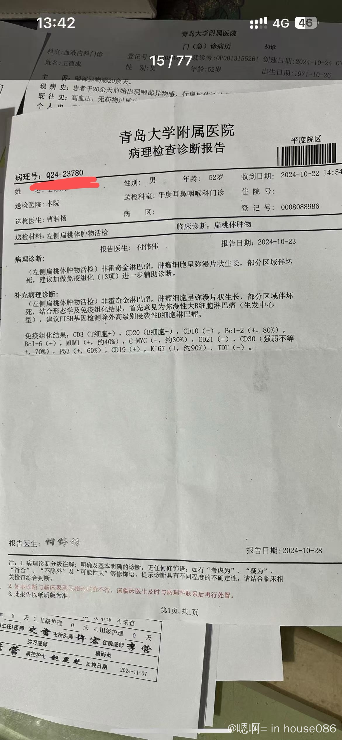 当时做的fish显示不是双表达和双打击哦,也不是高级淋巴瘤,这次中期没做。做病理前医生怀疑剂量不够,因为有效果就是不理想