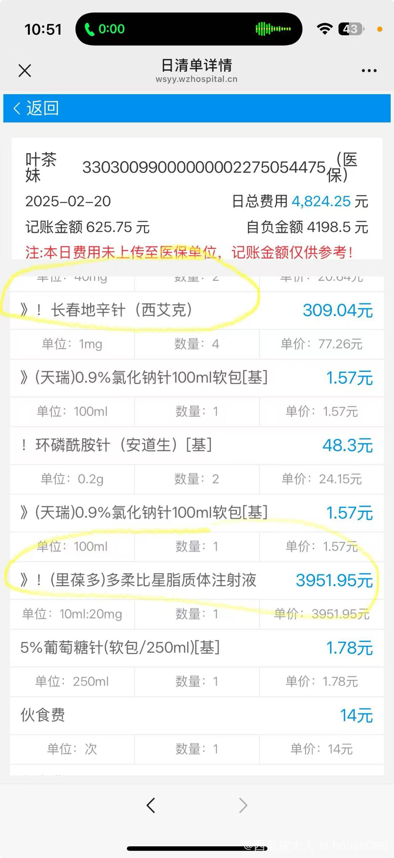 外婆从1.23号开始察觉肿块,到2.8号穿刺确诊低分化癌,到做petct、免疫组化化验、会诊,住院、输液港、基因检测,今天是化疗第三天,包括今天住院第10天,前后一共花了35000块钱,从外面药店买的利妥昔单抗注射液显示自费花了6000块钱买了6瓶,昨天又输了里葆多,都不能报销!外婆年纪大了,积蓄不多,也不想给子女添加负担,知道花了这么多钱表示不想治疗想回家了,但是化疗药下去之后明显有好转,我们不想放弃!求助温州的病友和懂行的人,怎么能做到报销上限,目前只知道办理门诊特病可以达到门诊和住院同比例报销,但是目前住院化疗第三天就花了这么多了,以后可能还要更多,药也来越贵!!