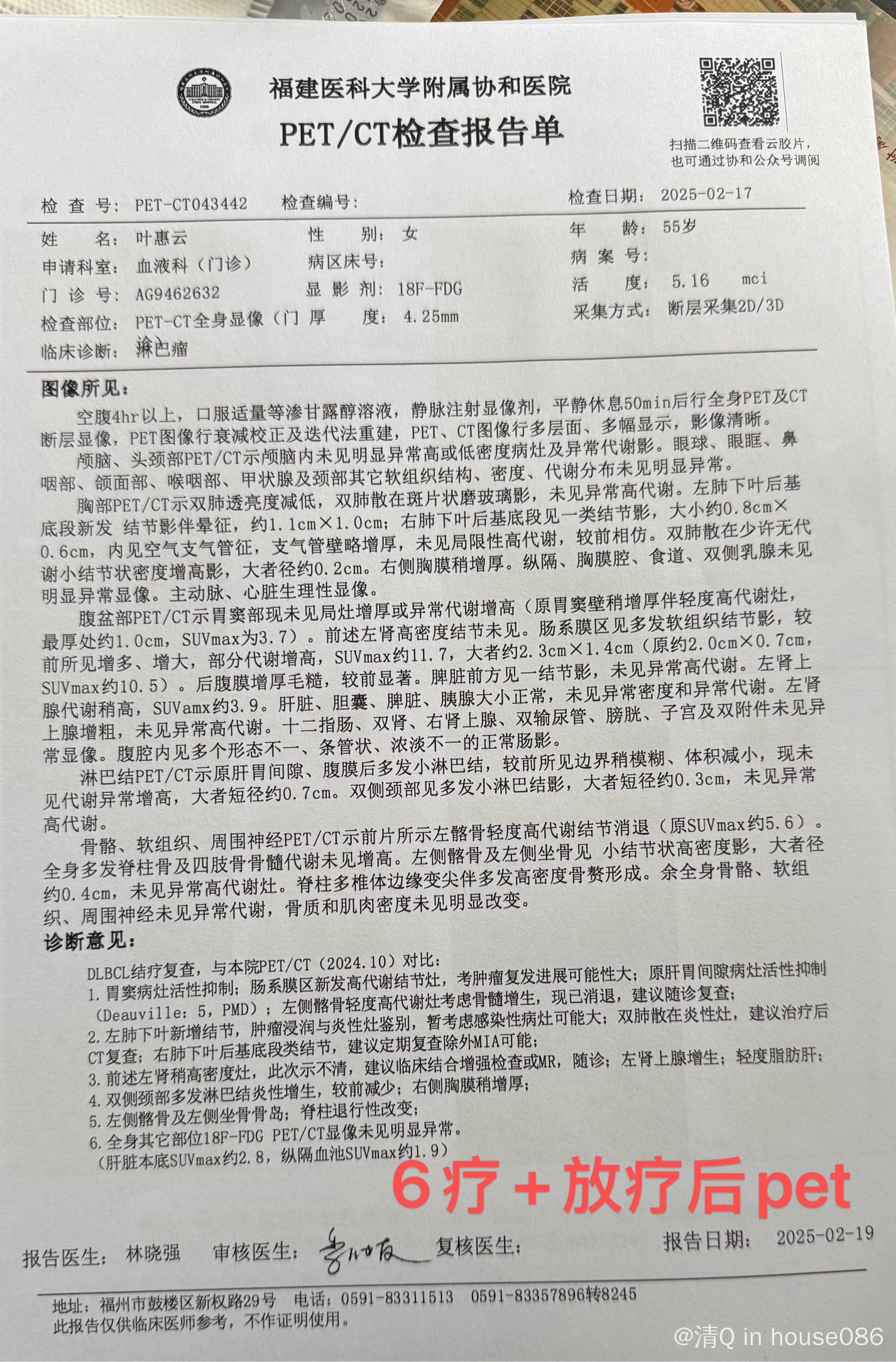 母亲55岁,弥漫大B淋巴瘤,非生发中心来源 ,去年8月开始使用POLA- R- CHP方案, 一共6次,中期pet评分4分,6疗后又进行放疗,现pet5分,请问@橙色雨丝 及各位病友后续建议怎么治疗?cart吗?还是高罗华?