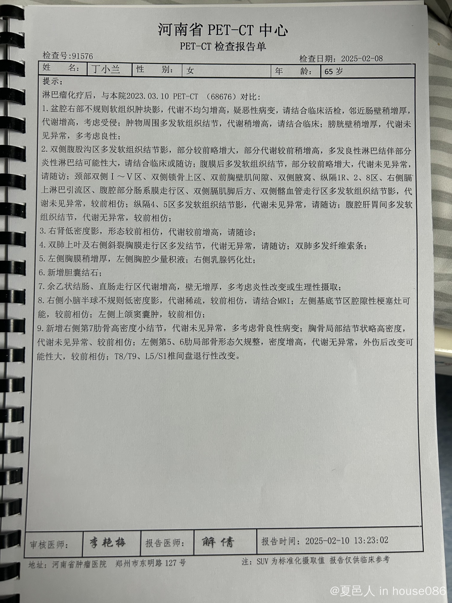 2024.12身体又开始不舒服,2025.2做了腹部彩超发现混合物包块,随后做pet腹部包块疑似恶性肿瘤,怀疑淋巴瘤复发,做了腹部穿刺,还是不确定,后+做免疫组化,焦急等待中