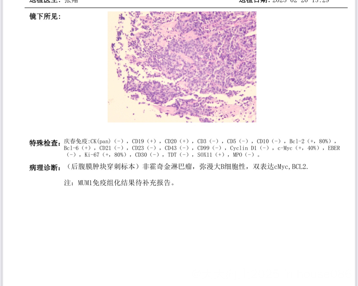 弥漫大B,双表达,腹部大肿块,医生推荐R-pola-chp方案