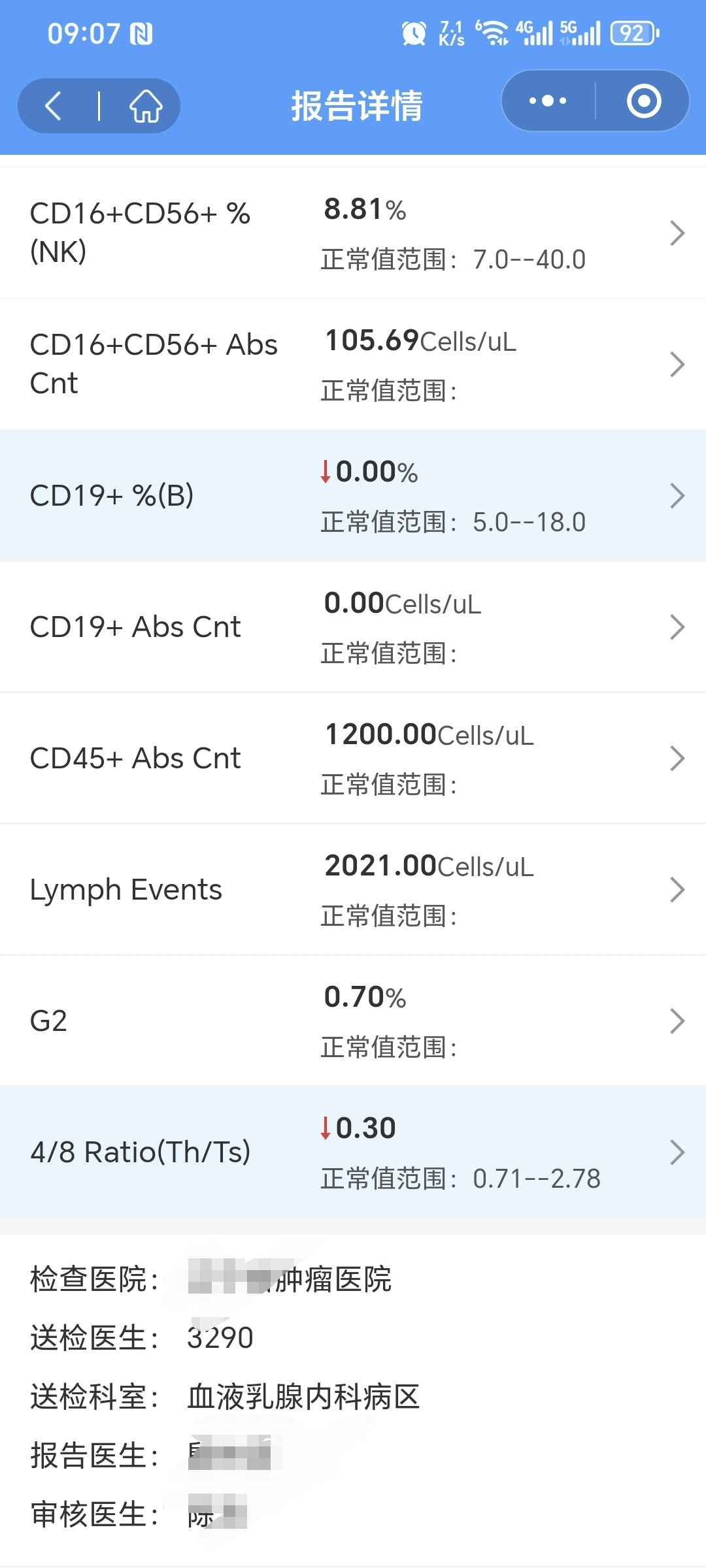 这里静脉血和淋巴细胞免疫分析有几项超标,请大神帮看看指标会不会有问题?另外,老父亲从化疗开始一直口服泽布替尼呢。祈祷吧