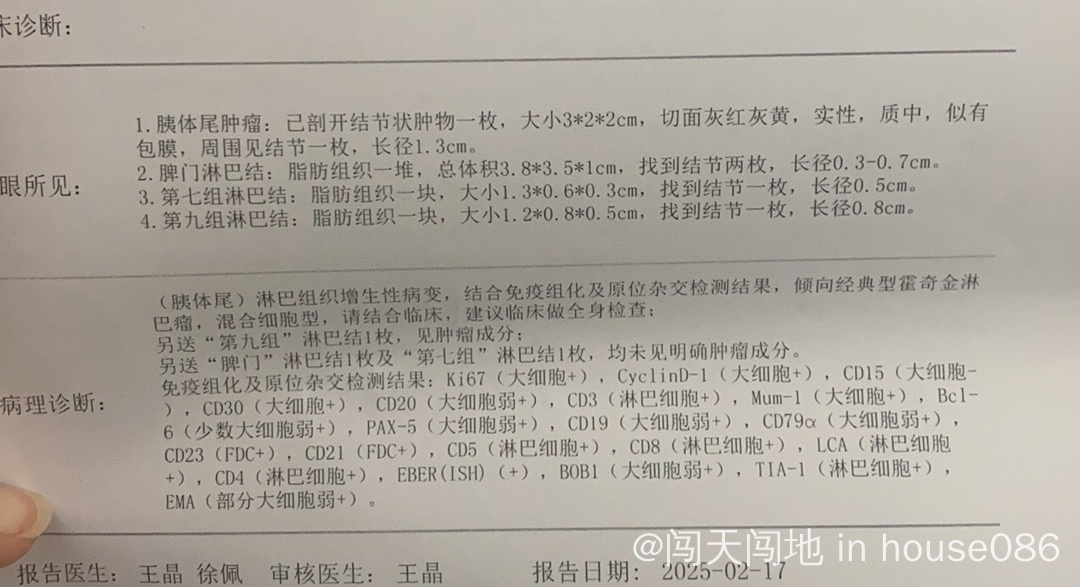 原医院做了个胰腺囊肿切除,病理结果很好,结果多了个霍奇金偏向…