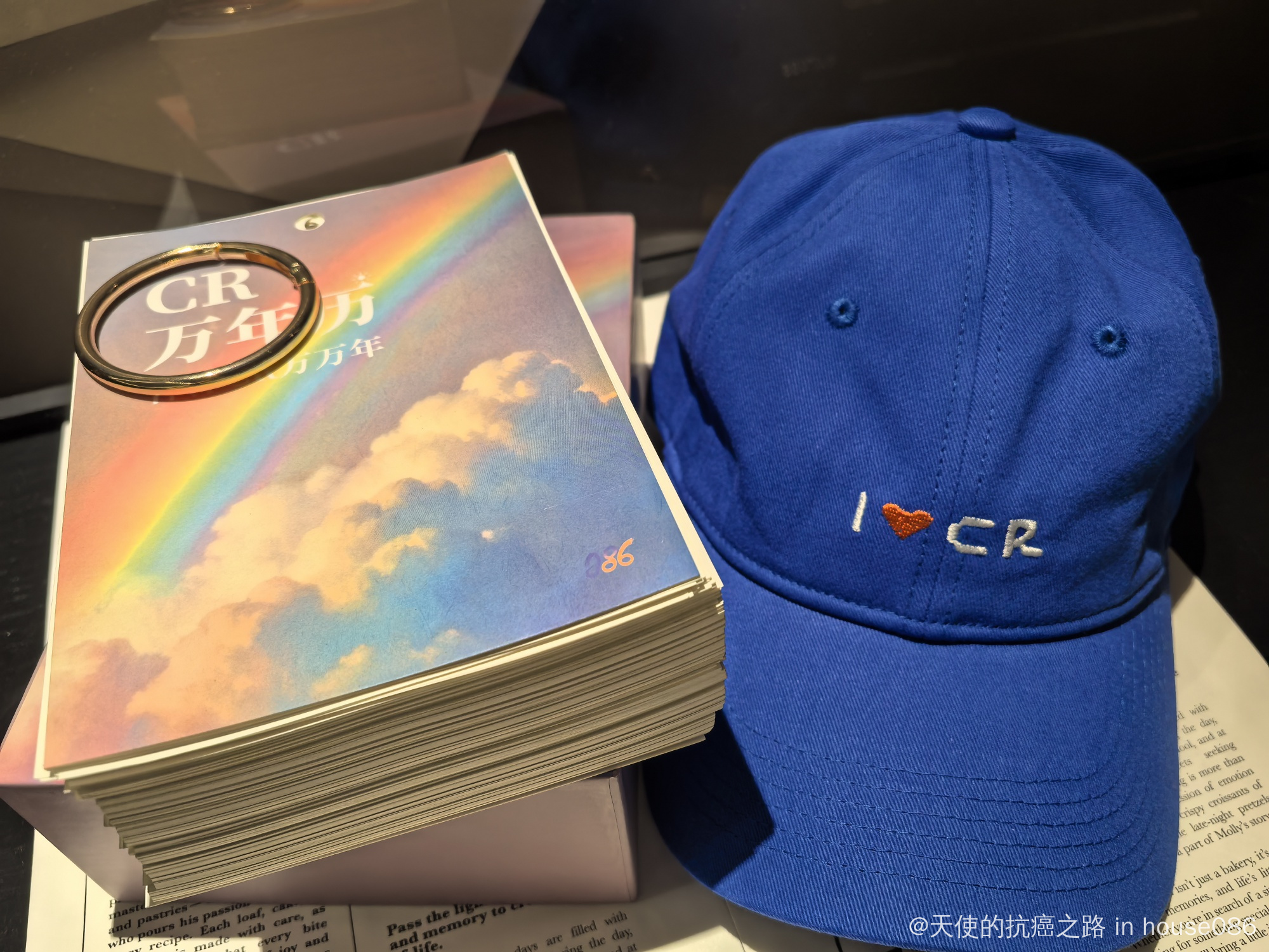 ps:收到淋巴瘤之家送的礼物了,i❤ cr不仅是一个标志,更是一种信念和鼓励,不仅有着非凡的意义,最最关键的是,我这个颜控觉得帽子的颜色它真的好好看呀哈哈哈,特别显白,万年历里面的话也特别励志,真的好有心了,爱了爱了❤