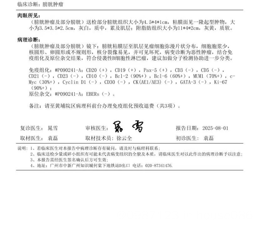 做完膀胱部分切除,三天后出院又加做了免疫组化,今天刚收到要加做原位杂交,免疫组化报告出来了后续要做什么