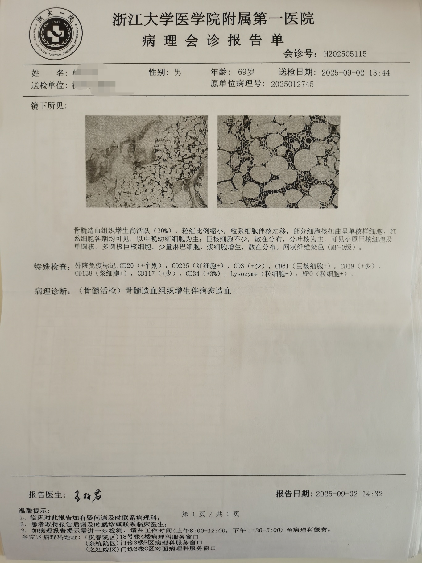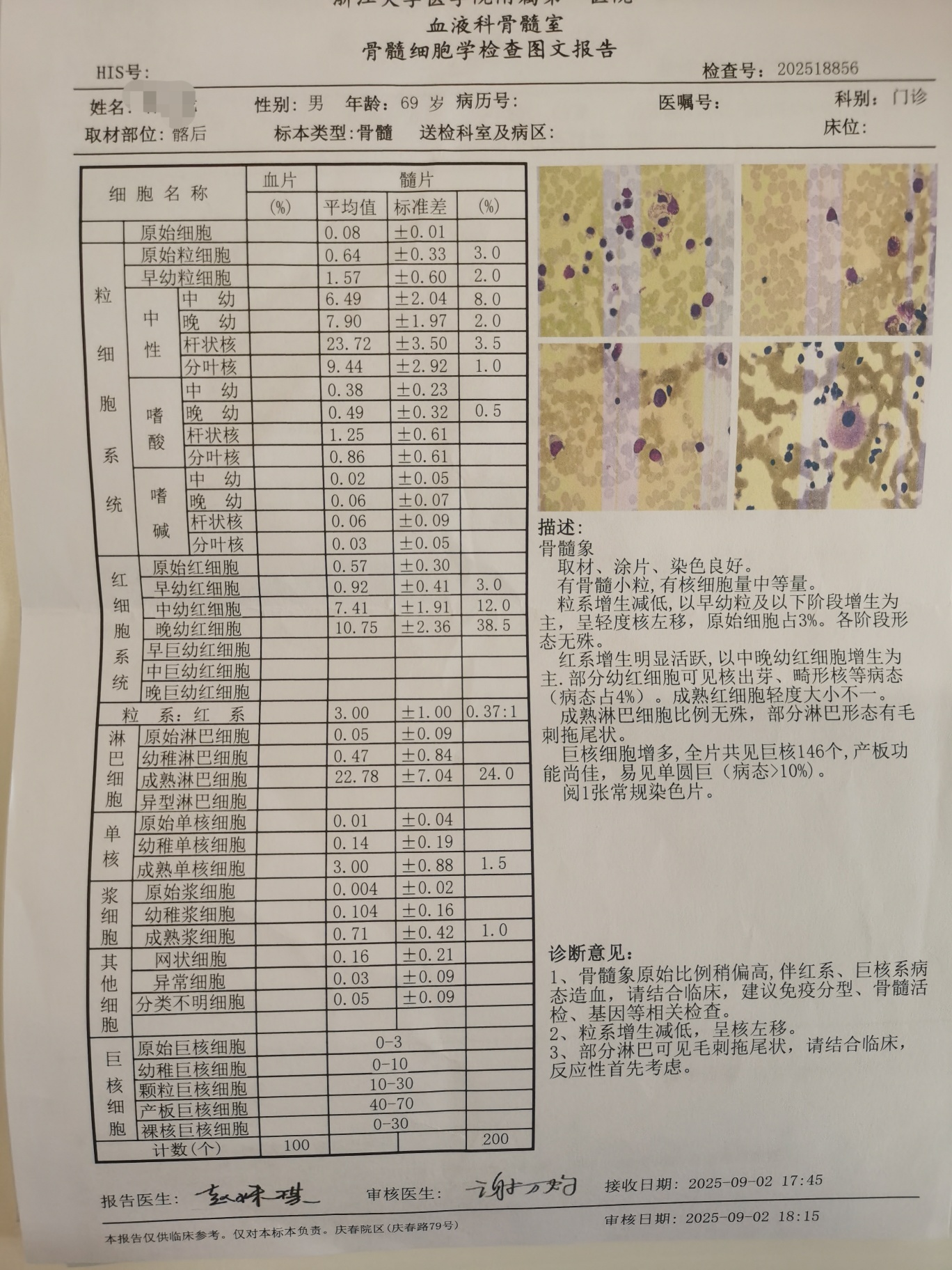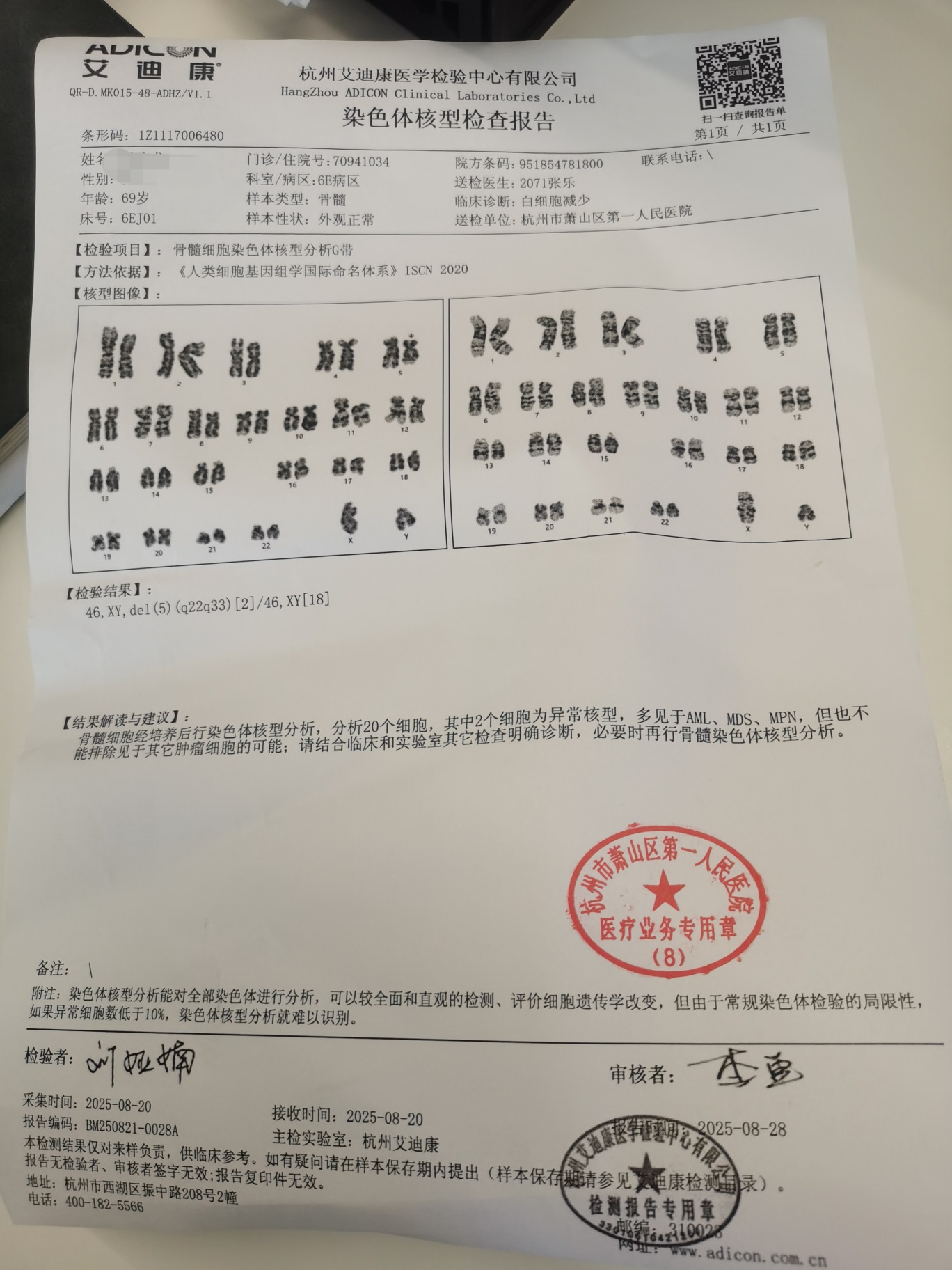 疫情后爸爸白细胞、中性粒一直降低,8月做了一系列检查,最后骨穿发现了问题。染色体5q缺失,原幼细胞3.24%,完善基因检查发现有突变。是不是淋巴瘤化疗药物环磷酰胺的副作用,月底想拿报告去上海,想挂许小平的号子,但是没有找到该医生的挂号信息,最终挂到陈芳源,是否有其他医生推荐的。