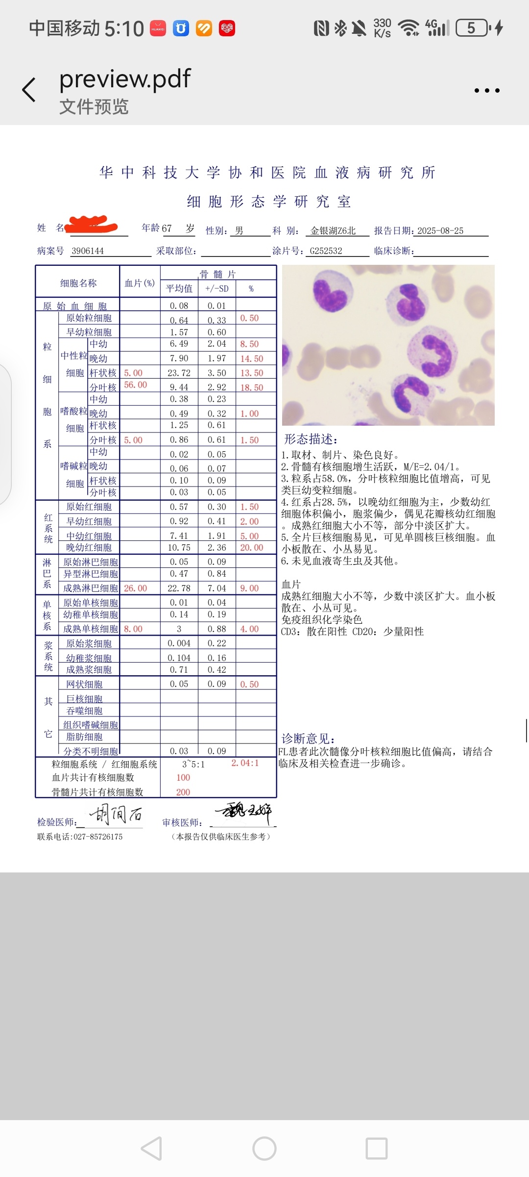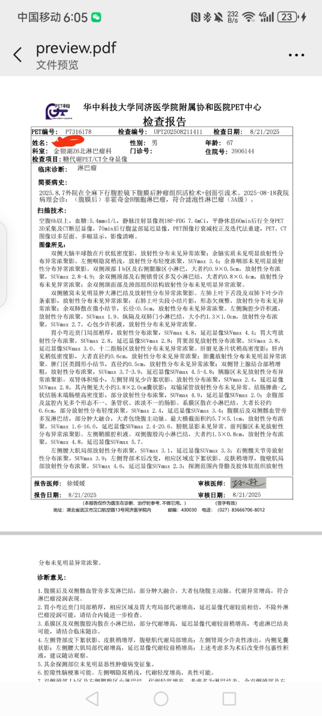 橙色雨丝 发表于 2025-09-23 10:26 滤泡性淋巴瘤,疑似伴大B转化,无非是R-CHOP或者G-CHOP方案,没有什么其它选择,即使有,也是试验性的。