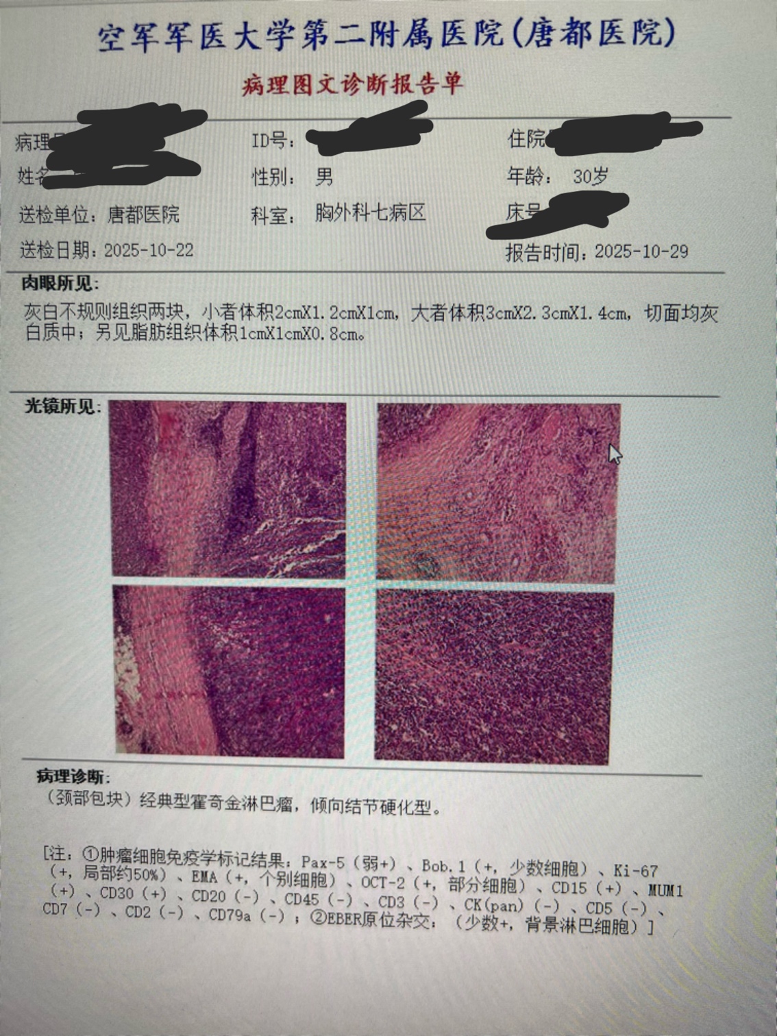 病理报告滤泡性淋巴瘤1-2级