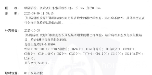 感觉像做梦一样,34的老公9.20增强ct怀疑胸腺瘤?心态崩溃,当天晚上订机票飞上海,来到复旦中山医院,挂了号做了petct,做了活检,10.9医生来电话说是个淋巴瘤,要挂血液科,一切再重来!挂了血液科高级专家,结果告知没有床位,推荐了复旦附属的老年医学住院,赶紧办了住院,下午做了骨穿结果还没出,大夫给出了hyper CVAD,心好慌~