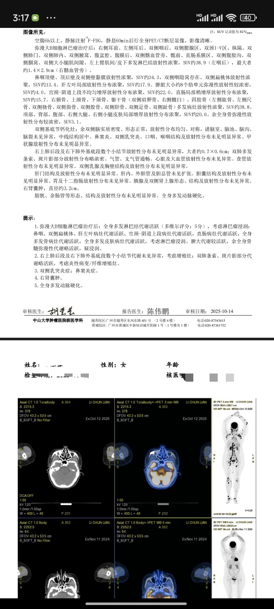 橙色雨丝 发表于 2025-10-14 16:17 BTK抑制剂即使有用,总有耐药的时候,现在再想这个没有什么意义,复发大B要么移植(如果化疗敏感),要么CAR-T(如果化疗不敏感),其它都不重要。