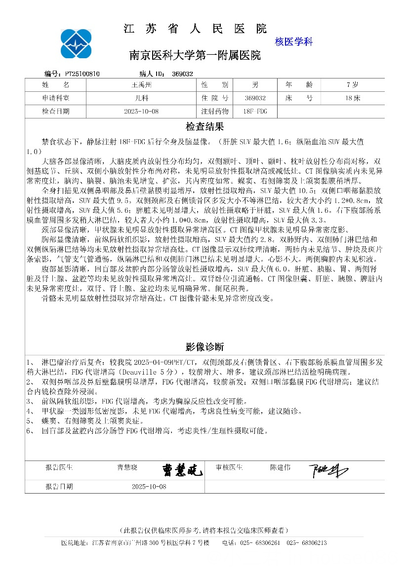 儿童伯基特淋巴瘤康复九年啦
