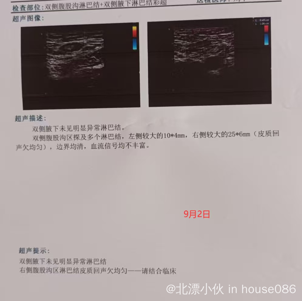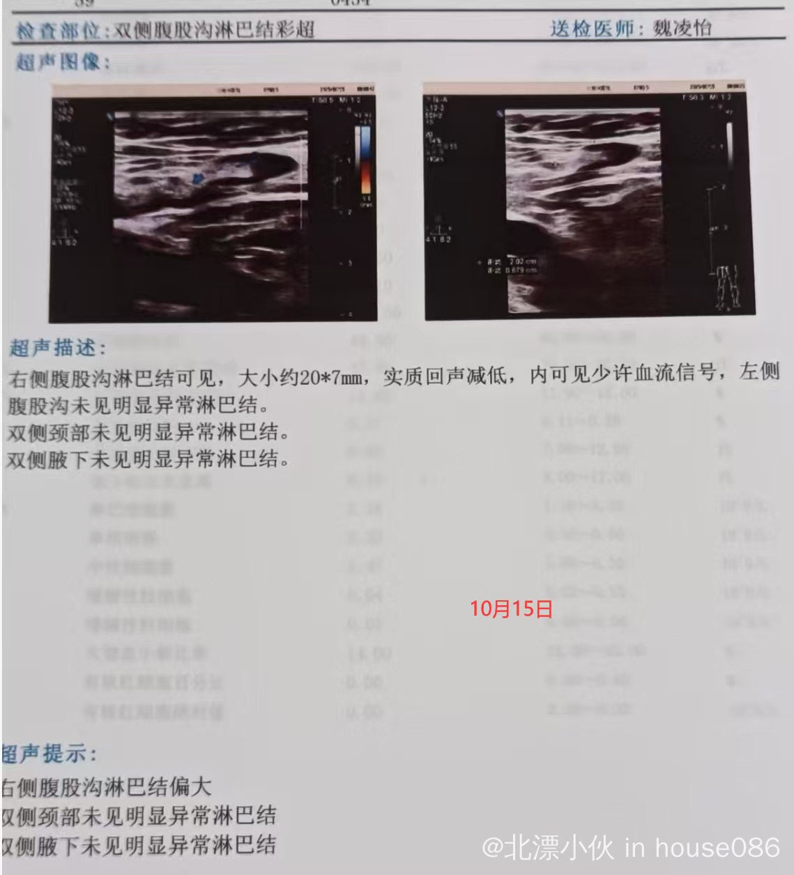 10 月 15 日和 9 月 2 日(做对比用) 超声复查结果如图