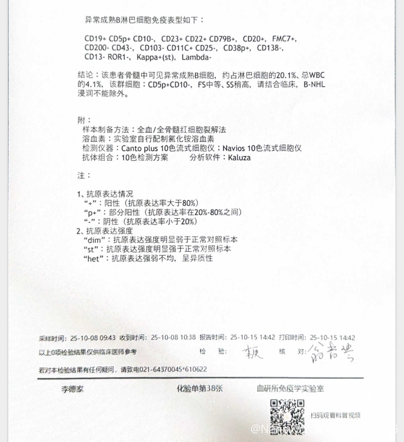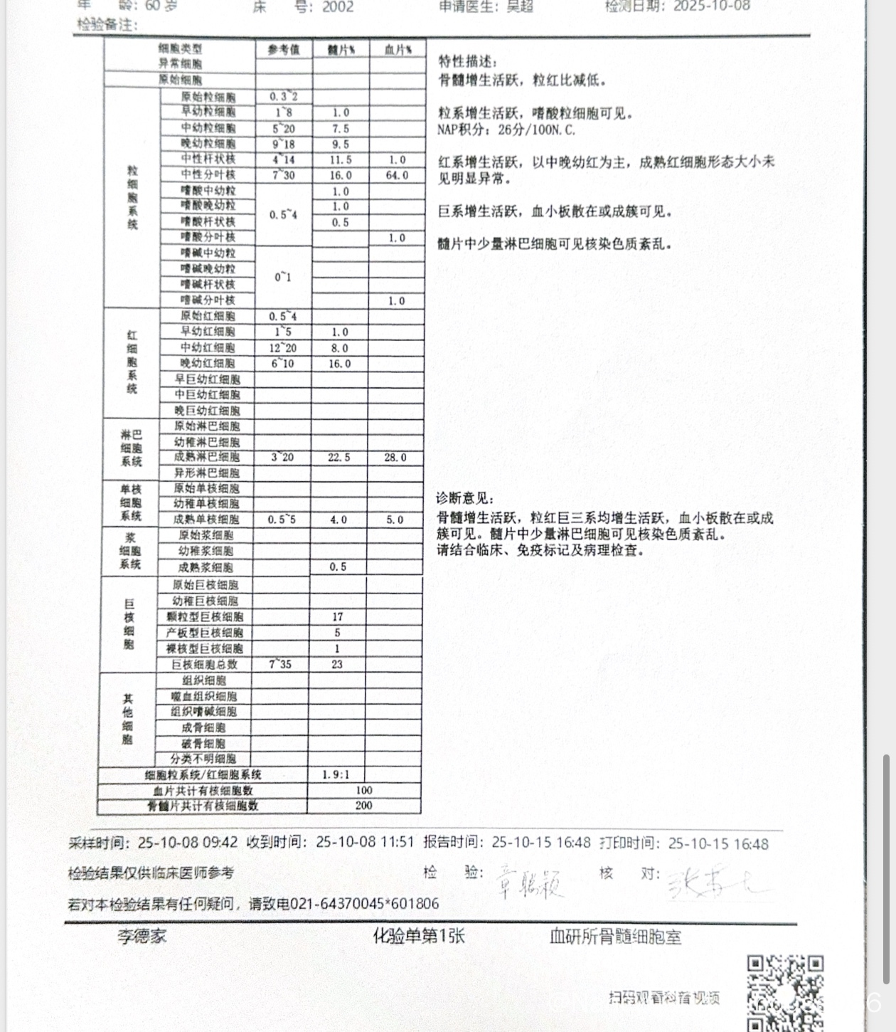王先生1946 发表于 2025-10-22 17:49 医院没叫做基因检测,骨隨无侵犯。