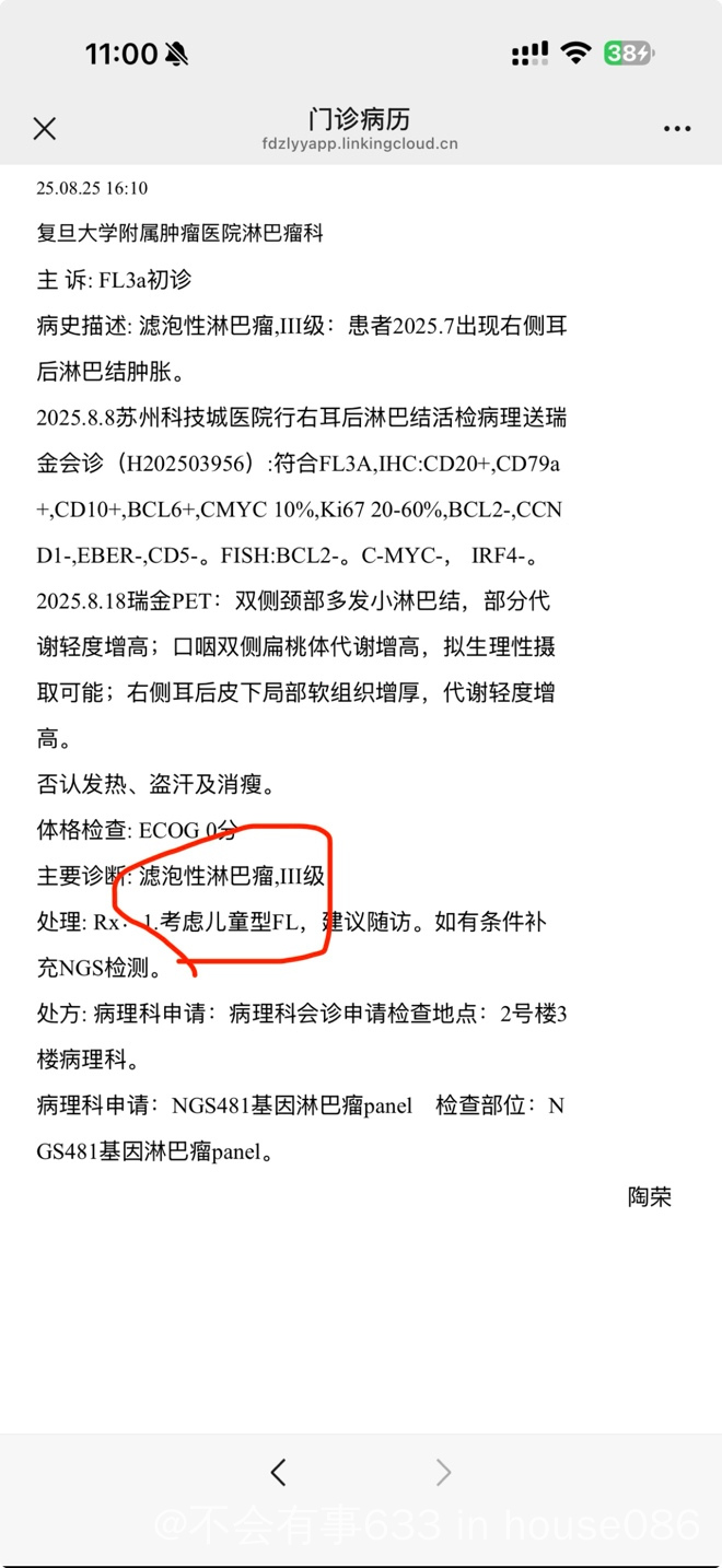 你的疑点是BCL-2阴,但是3a 级以上一些高级别也会呈现阴性特征,而且滤泡为主没有弥漫区域,这个是重点。如果觉得还有疑问可以加做二代基因检测,看一下MAP2K1等基因,结合一下petct如果不是全身多发局限头颈单个部位,不管是不是儿童型滤泡还是3a级滤泡术后切除也可以密切观察,何况你尺寸很小,陶荣意思观察走一步看一步,这是比较合理的,多给自己缓冲时间,如果后期长的快再考虑介入也不迟! |