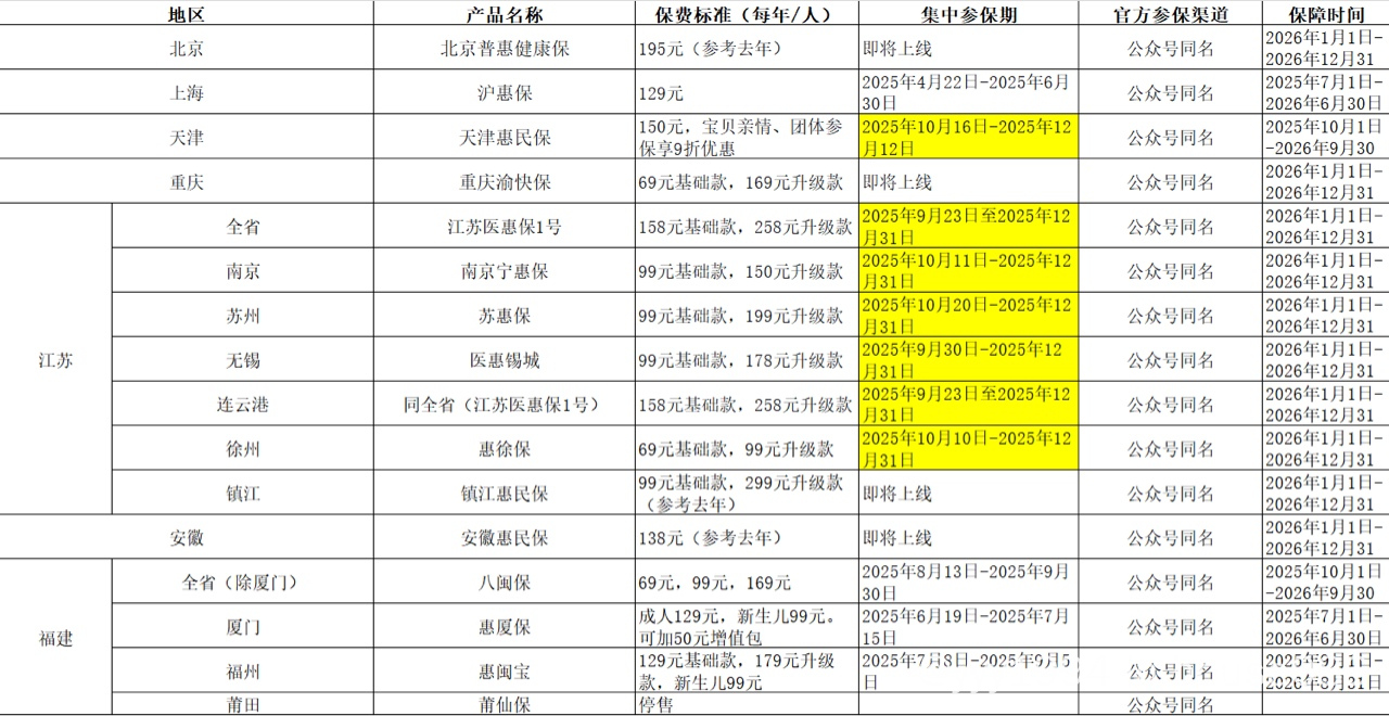 每年的10-12月是大多数城市的惠民保上线时间,我整理了一部分,剩余会在第二篇补充,大家可以参考下,如果我写错时间了,也欢迎指正哦。