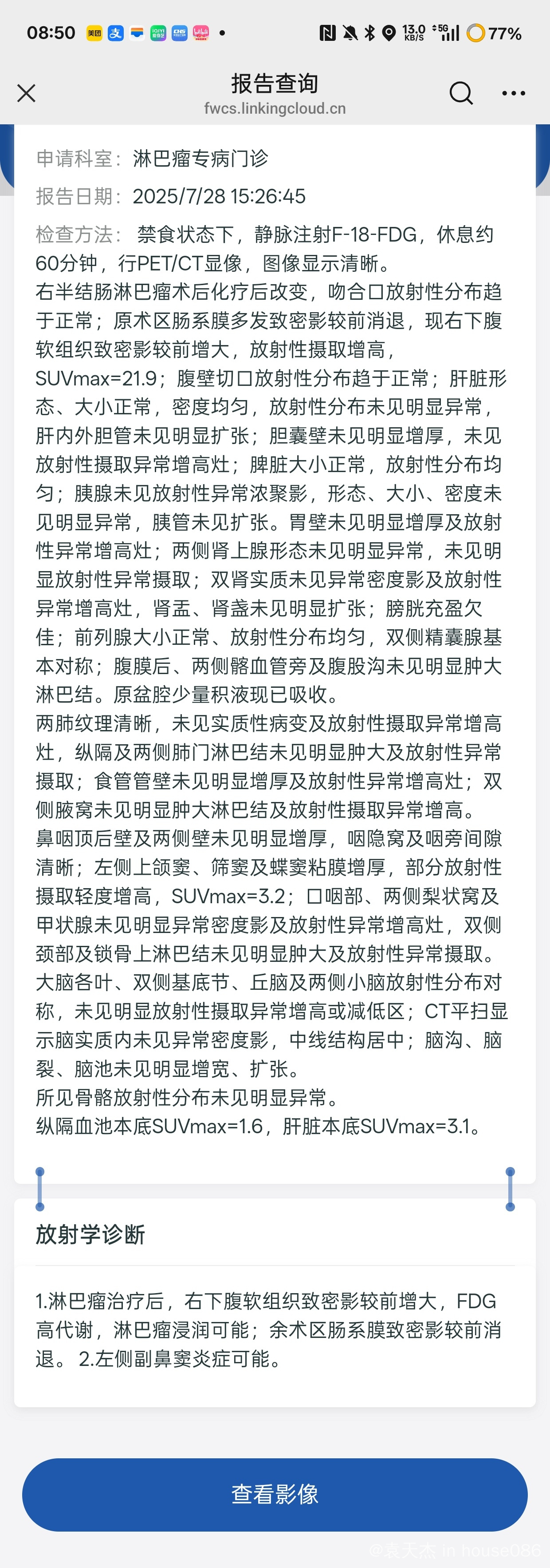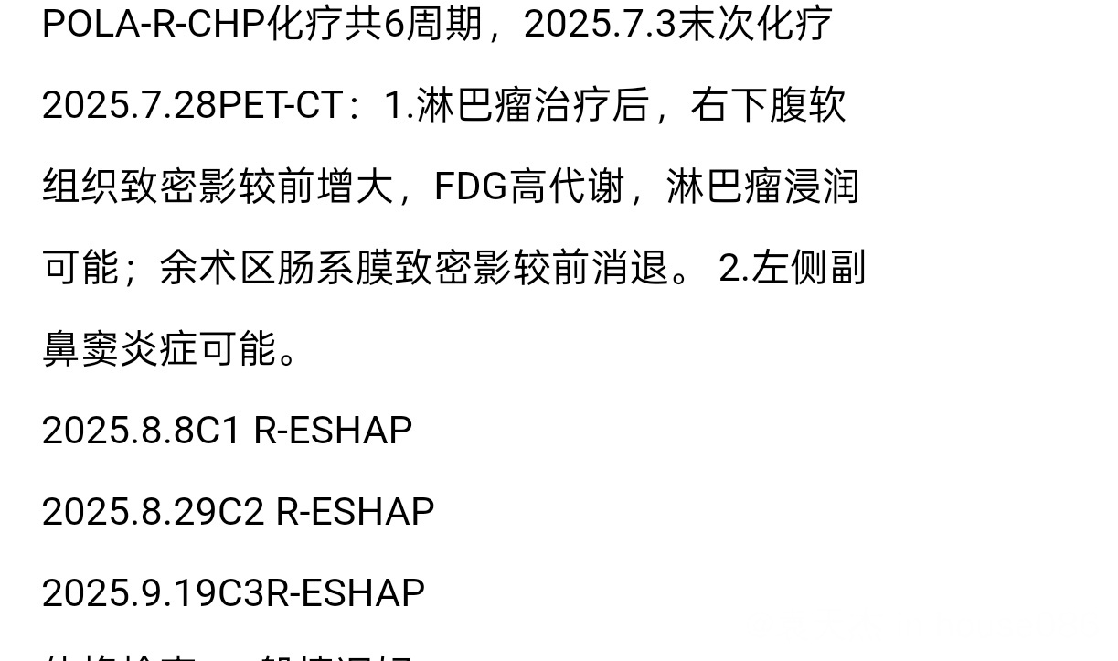 香子吉人天相 发表于 2025-10-24 10:56 淋巴瘤主要以化疗为主,没有效果主要是因为方案不对,Cart可以优先选择。