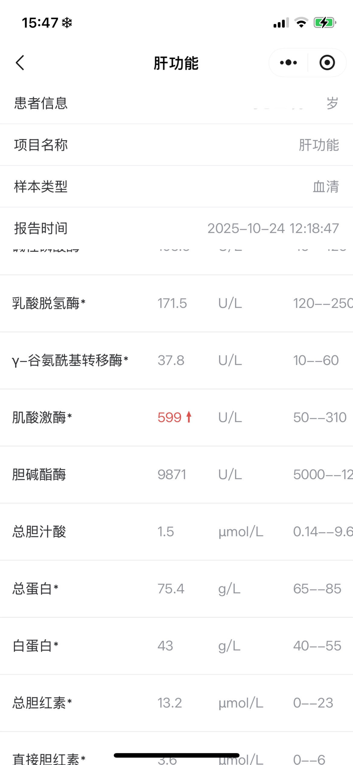 今天复查了一下肝肾功能 这个是肌酸激酶升高 意味着什么 有没有懂的大神