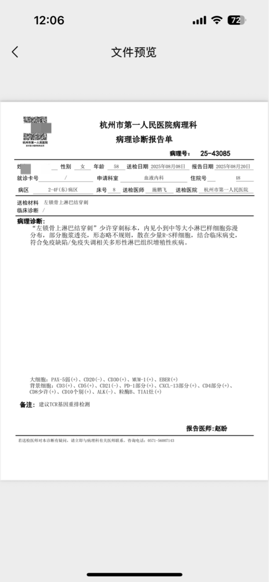 可以帮忙看下吗,TCR还没有出来,是淋巴瘤吗,病人现在会发烧
