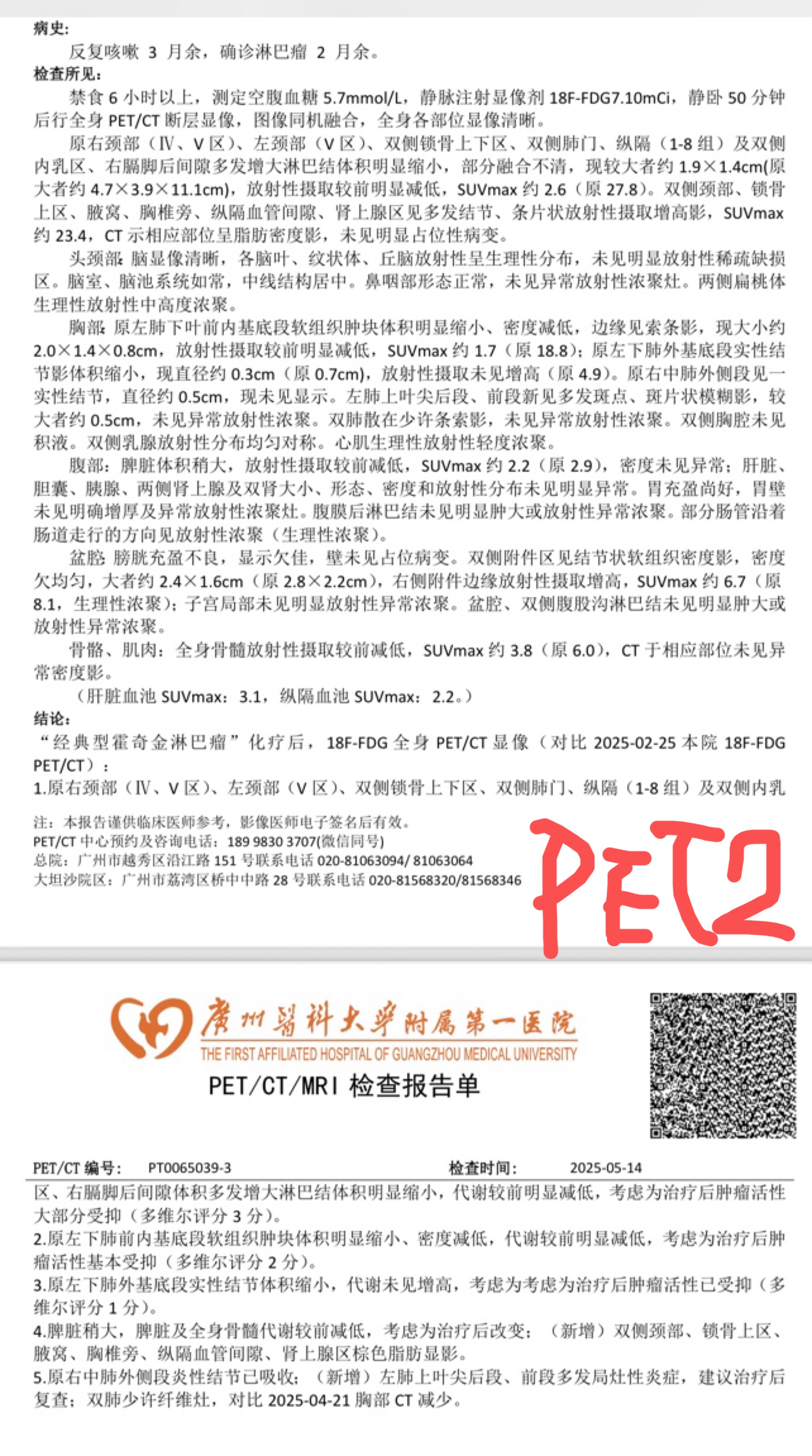 5月15日,2疗后的pet2中期评估,3、2、1分。