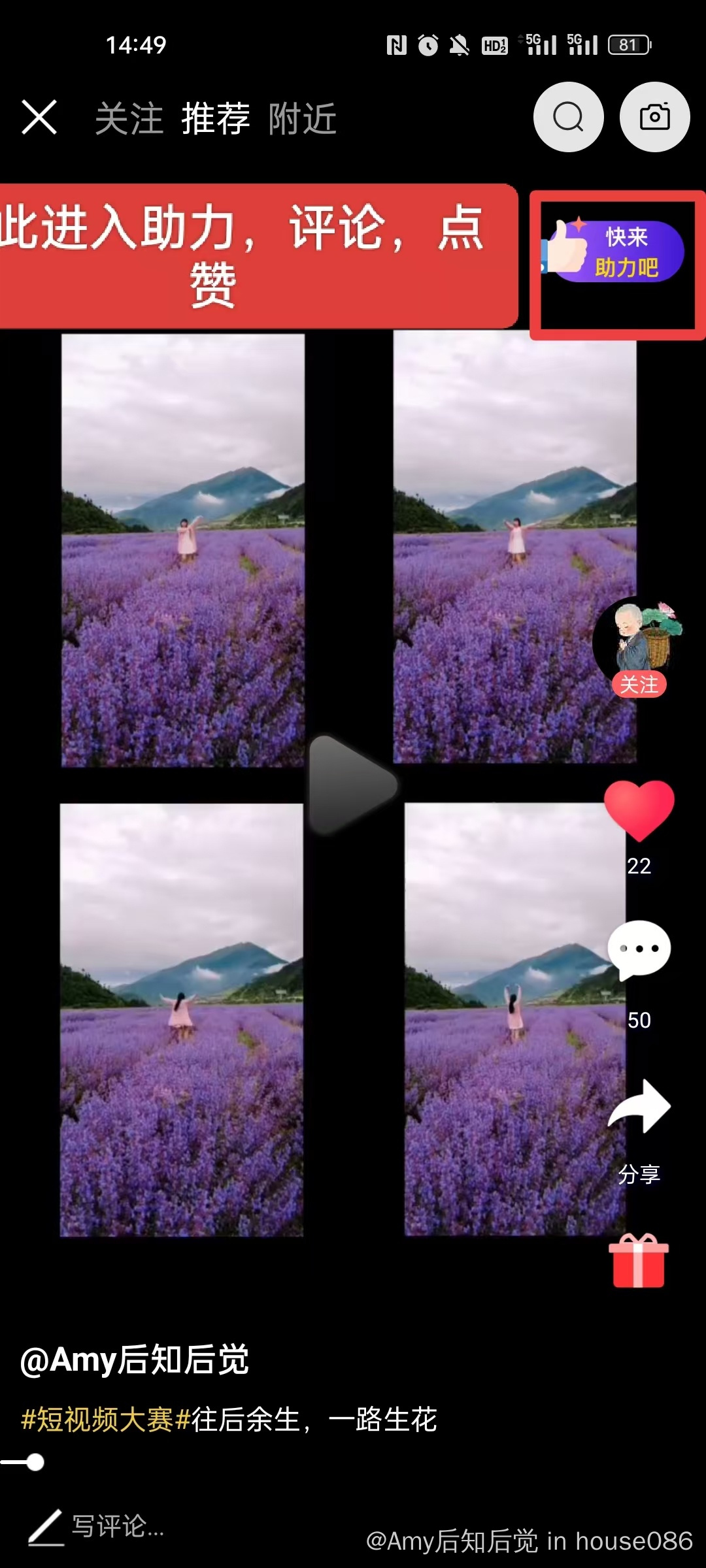 愿每天助力的人好运,福气满满,财富滚滚来。每天点进网址进去可以助力三次,3号作品点赞,评论也可以加分,操作图片如下