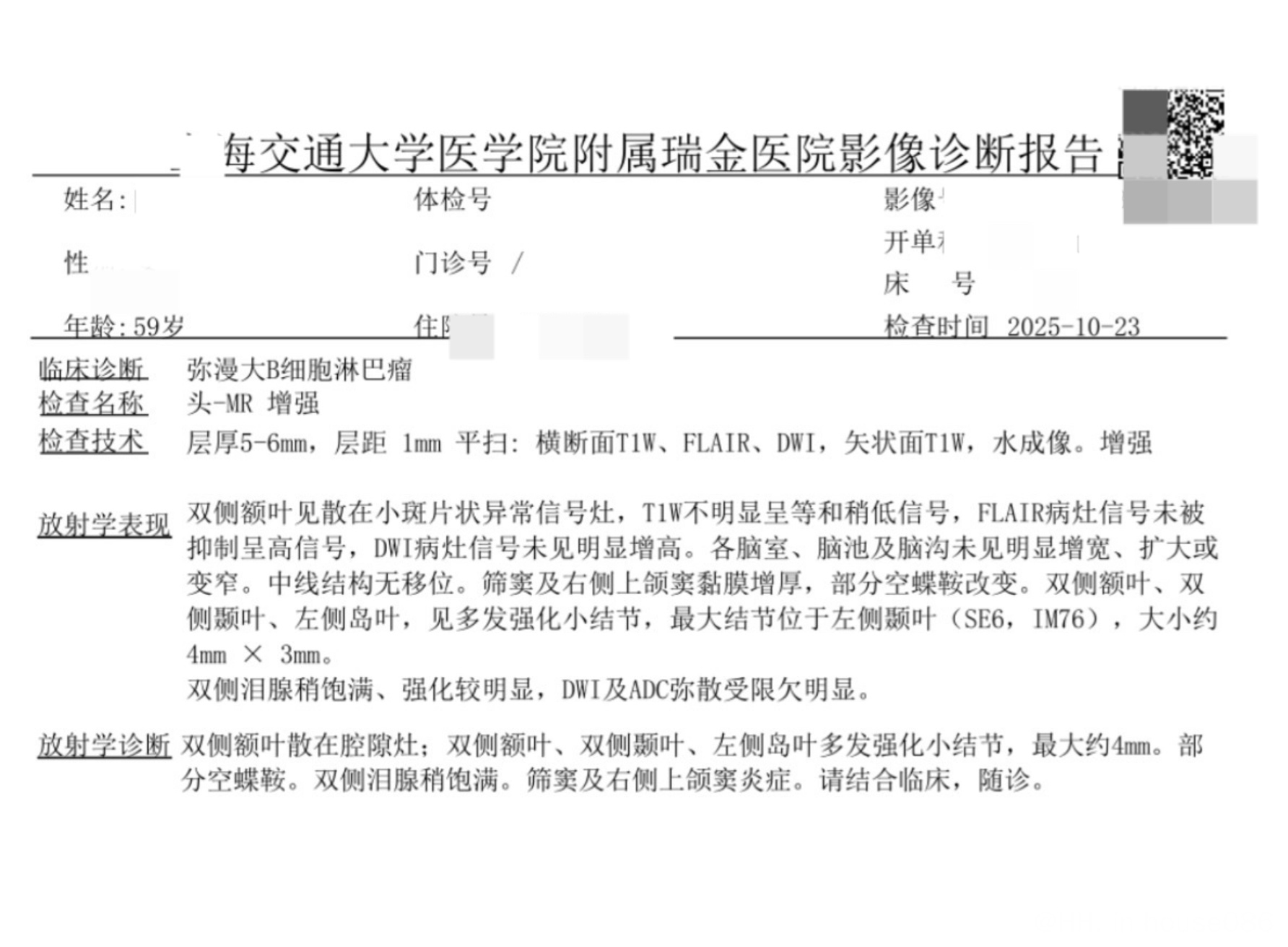回输前做的核磁出来了,请