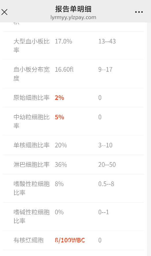 昨天一早的血常规,原始细胞比率2%,下午住院。今天上午骨穿,等骨穿结果。