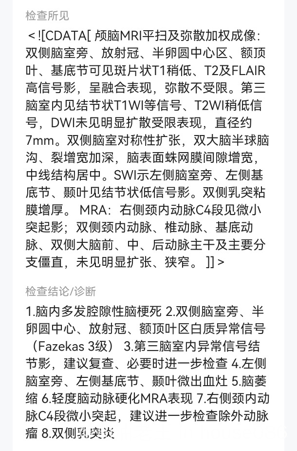 我父亲2024年1月确诊为弥漫大B细胞淋巴瘤,MCD亚型,2024年8月结疗后一直服用泽布替尼。前几天说偶尔有一过性的头晕,腿不听使唤,几秒钟过去就没事了。带着他去医院做了个脑核磁,今天出来报告看了看,有点也担心(约的明天专家看结果)。想问问各位大神,这会不会是脑转移了,谢谢!