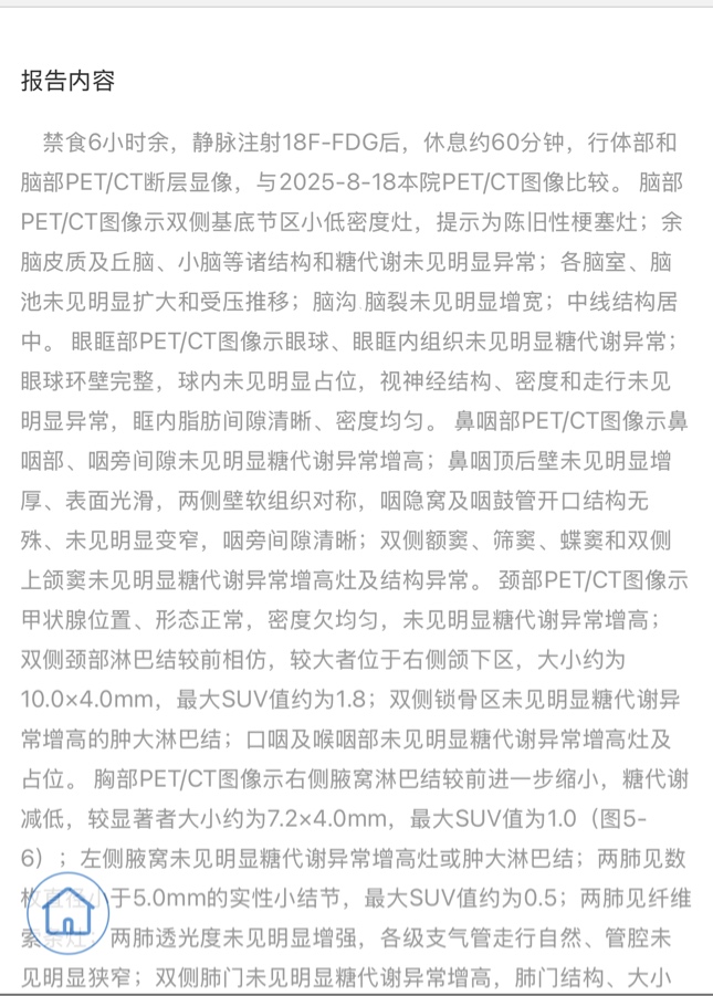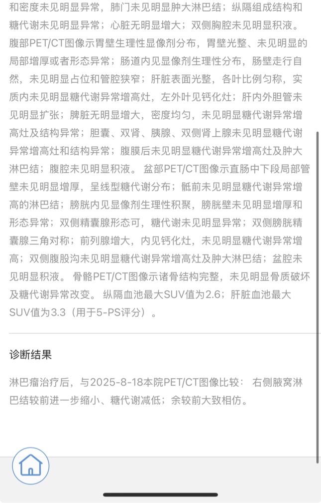 我是弥漫大B淋巴瘤,这个PET-CT的结果为什么淋巴瘤还没消除,是不是还没好?