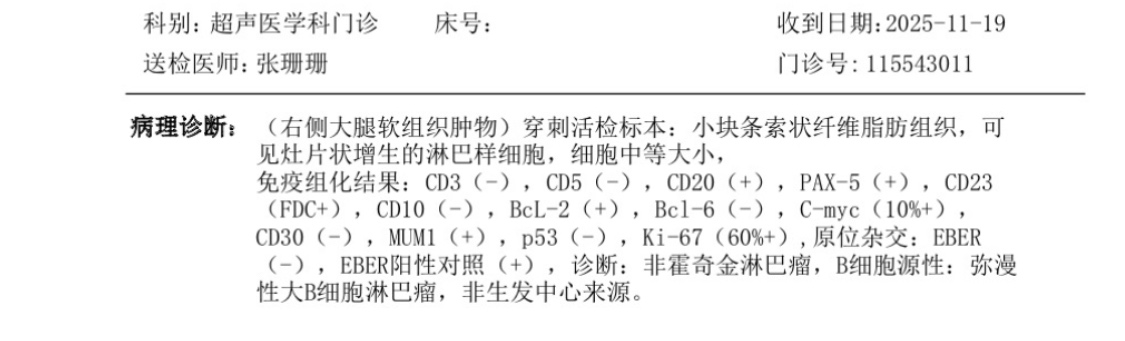 锦鲤护体 发表于 2025-11-10 14:31 那除了腿上有肿块 还有其他不适吗 最近我家里LDH也高了 我看到您这个报告 我有点紧张和焦虑