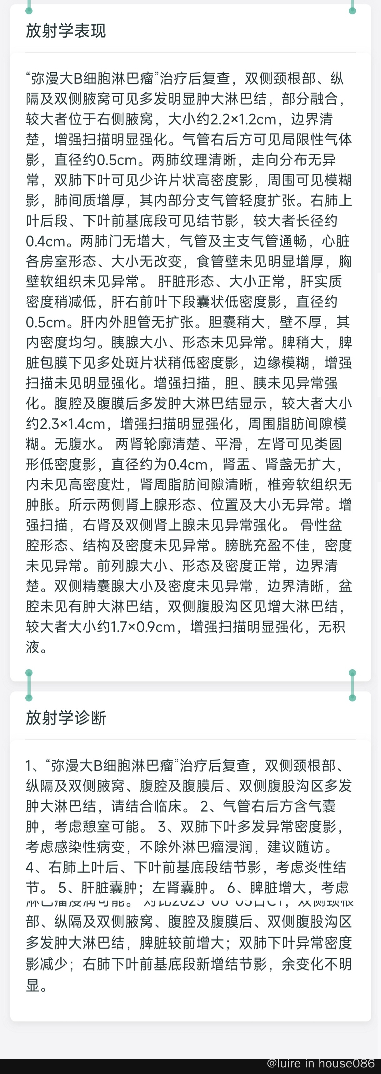 非霍奇金淋巴瘤7年多,血管免疫母细胞T细胞淋巴瘤复发转弥漫大,化疗自体移植后复发