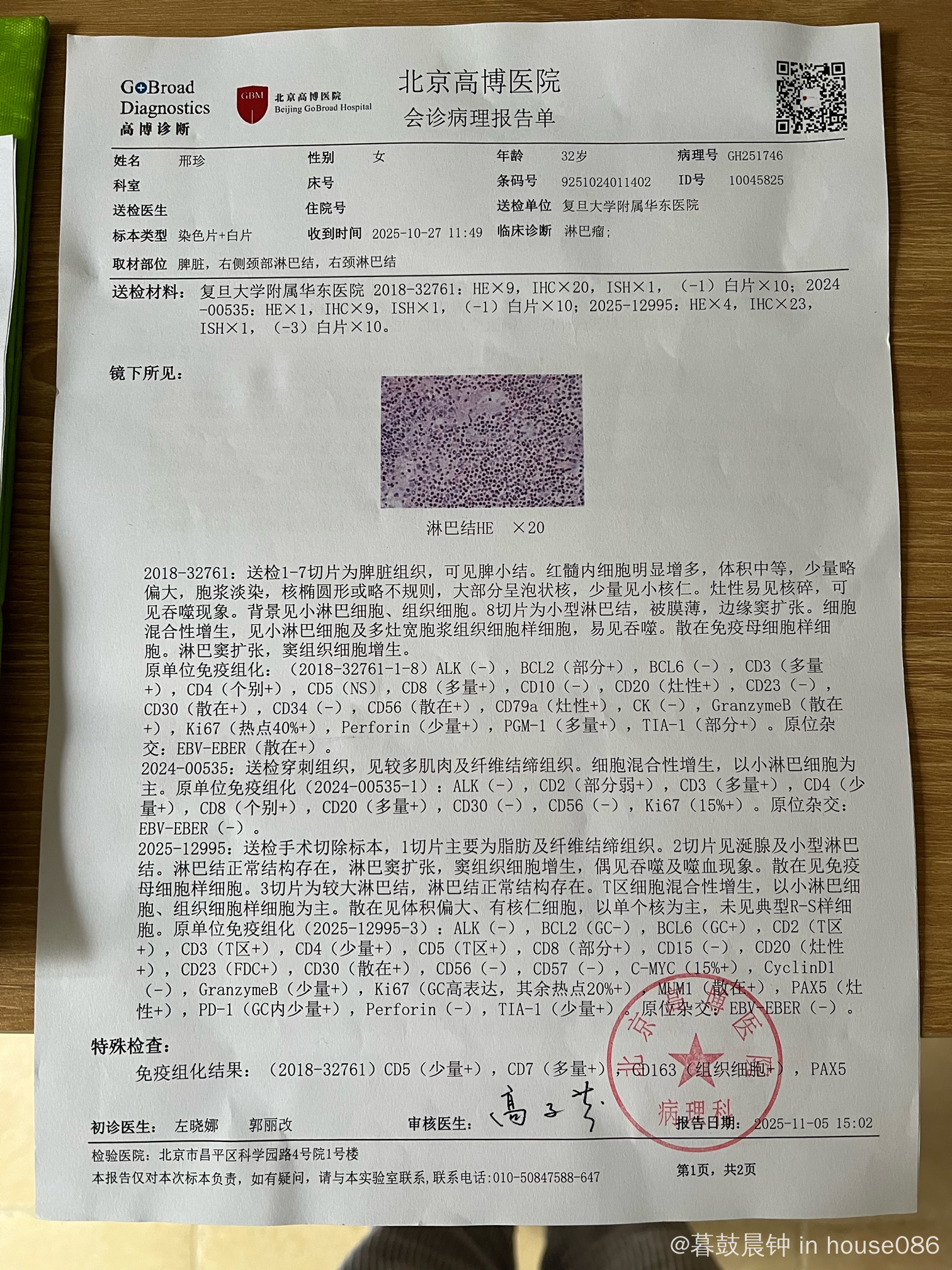 这个深夜想要谢谢淋巴瘤之家的病理服务 ...