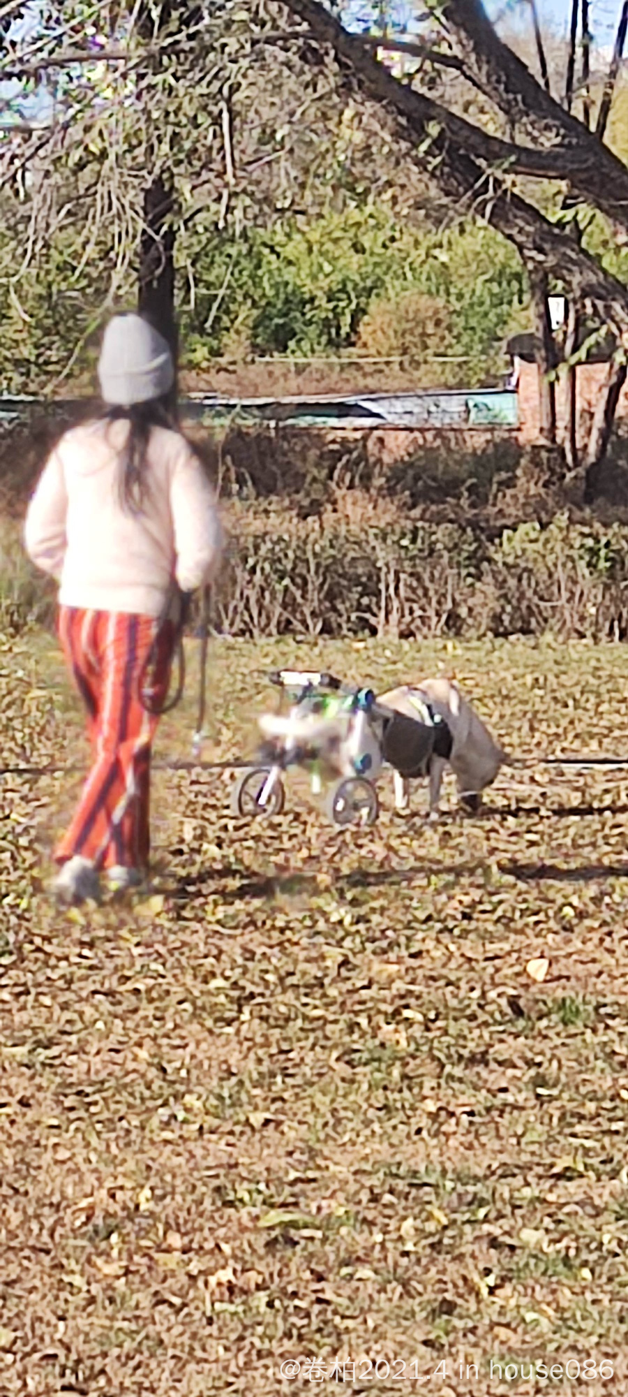 这个狗主人溜着这只狗狗已经有段时间了,每次看到这狗狗的样子,我都能想起些什么。这只狗今年9岁,生病好几年了,但主人并没有嫌弃它,经常带着它去附近的树林去漫步,虽然两只后腿无法用力,但看它的样子仍然快乐,这和主人尽心的呵护是分不开的。其实,人也一样,人的一生并不是一番风顺的,在面对着许多挫折与痛苦时,首先自己要坚强,不能轻易放弃。否则,你不但对不起自己,更对不起在你生病时,对你尽心照顾,日夜死守的家人。生病带来的痛苦对我们来说有时是无法控制的,但你不能把这些痛苦,强加于对你无微不至关怀的哪些善良人的身上。友子们加油