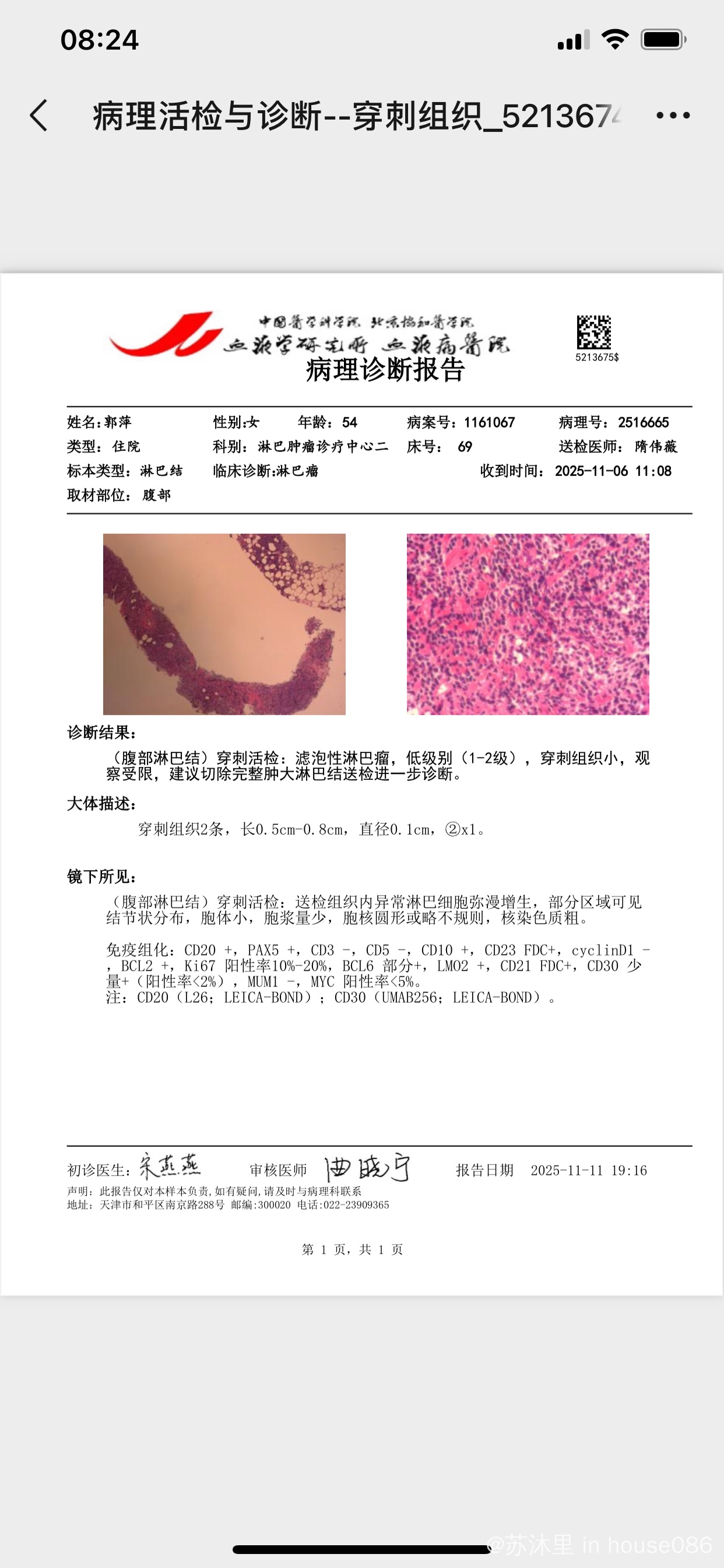 腹膜后滤泡淋巴瘤,但血研所说不排除小肠是其他原因,是 ...