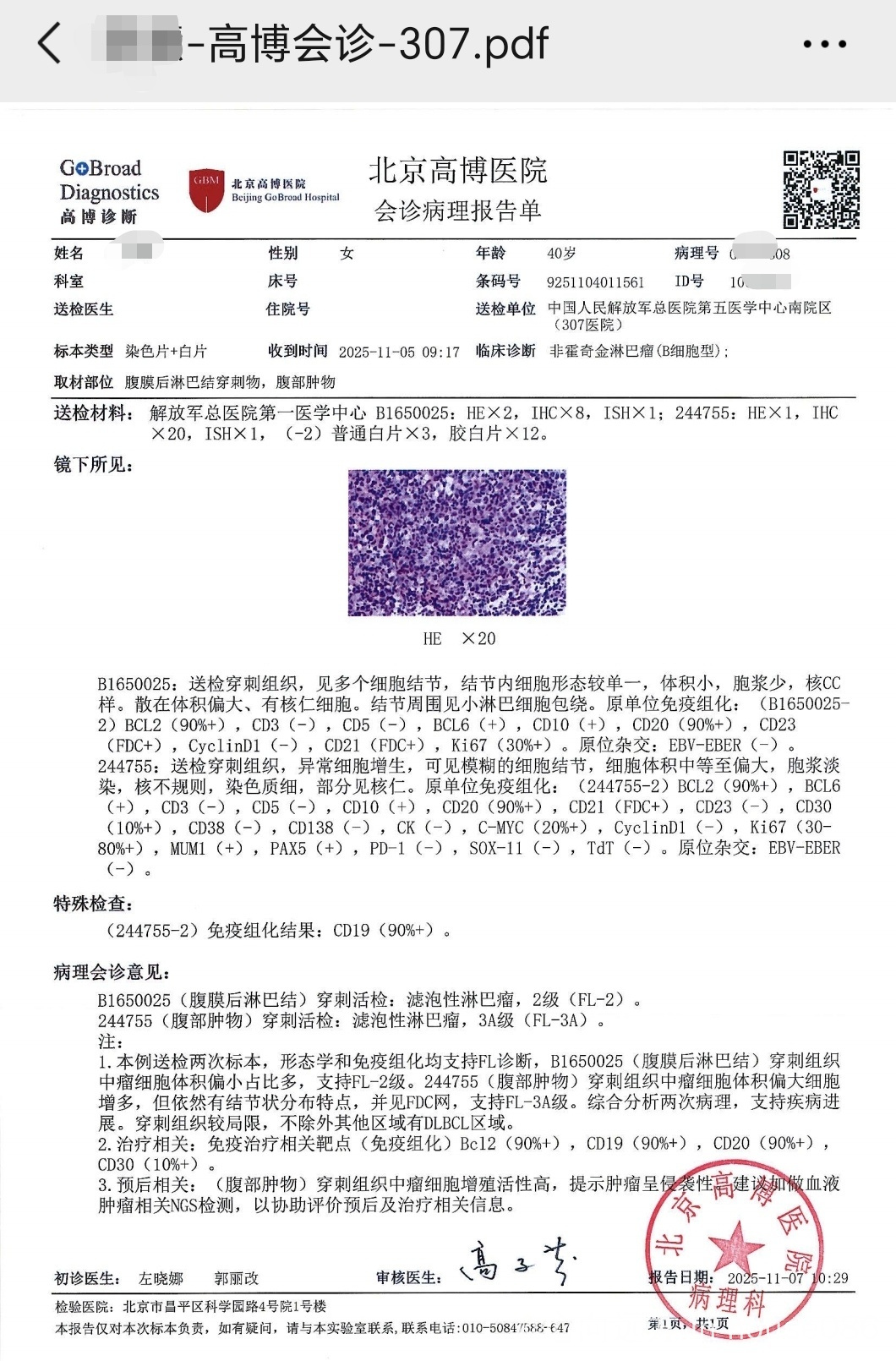 在307穿刺的结果是滤泡转化为弥漫大b双表达,送博仁高子芬教授会诊结果是滤泡3A(连带2年前确诊时病理一起会诊的,报的原先的是滤泡2级),现在2家医院结果不一致,病理又送去了陆道培周小鸽教授会诊,但得近20天出结果,目前肾积水比较严重想尽快化疗,请教各位大神,在病理不明确的情况下,是不管滤泡还是大b先打上个药再说吗?